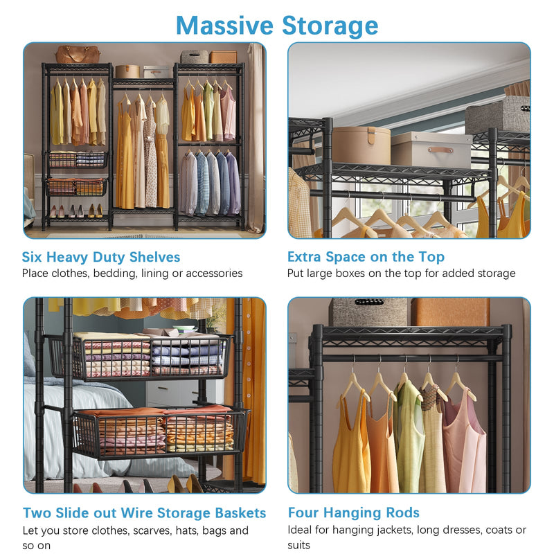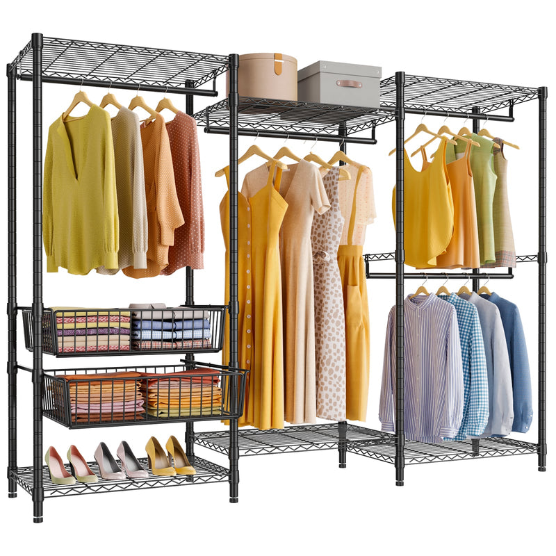 - STURDY & RELIABLE CLOSET ORGANIZER: Made of high quality iron, it features stable, sturdy and reliable freestanding closet system. Each hanging rod can support up to 75 lbs. Easy access in bedroom, cloakroom, clothing store, laundry room, walk-in closet and more.