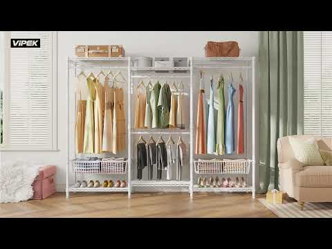 VIPEK V10 Clothes Rack is ideal for a bedroom, cloakroom, clothing store, laundry room, and walk-in closet. The multifunctional modular closet system is popular for its adjustable shelves to provide additional storage capacity.