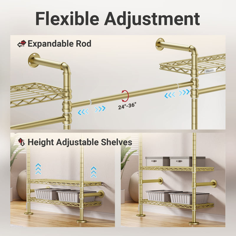 - Heavy Duty & Industrial Strength:Supporting up to 1250 lbs, this sturdy closet system is constructed with reinforced carbon steel and matte powder-coated pipes for rust-resistance, ensuring long-lasting reliability without sagging or wobbling.