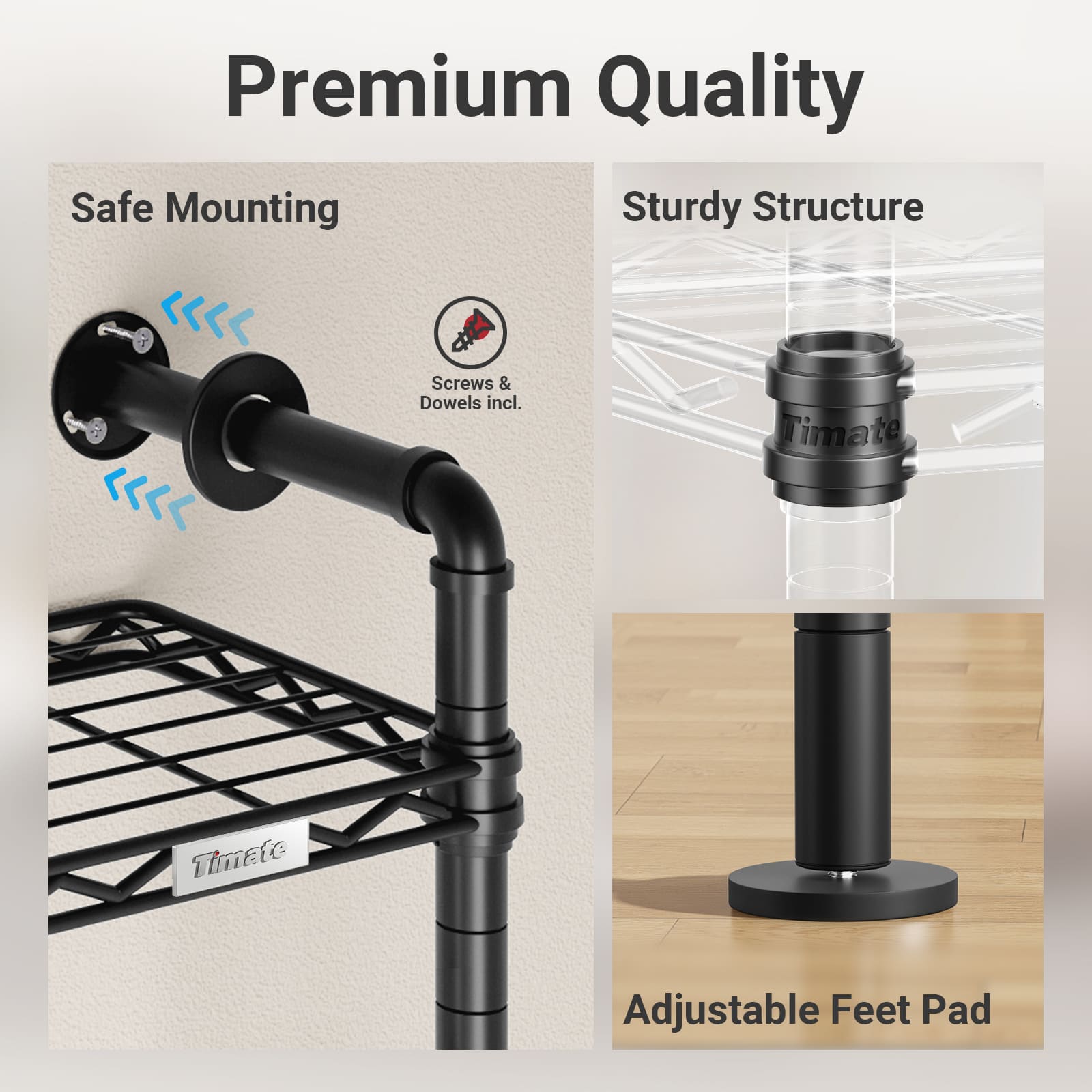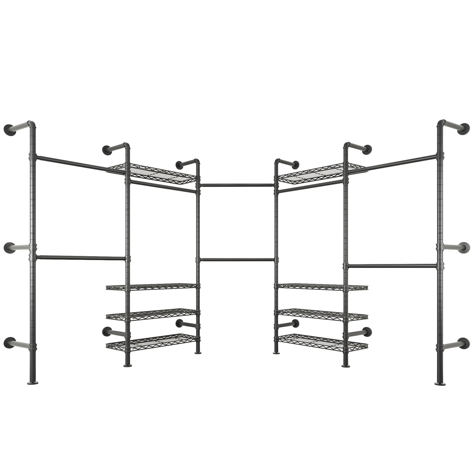 - Heavy Duty & Industrial Strength:Supporting up to 1250 lbs, this sturdy closet system is constructed with reinforced carbon steel and matte powder-coated pipes for rust-resistance, ensuring long-lasting reliability without sagging or wobbling.