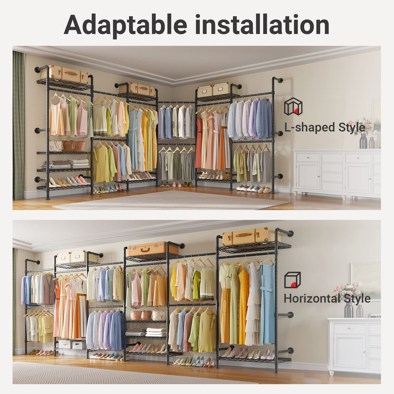 Quick Tool-Free Assembly-- The industrial closet system Includes pre-labeled parts and detailed instructions for easy DIY installation. Easily mount this modular closet organizer without professional help