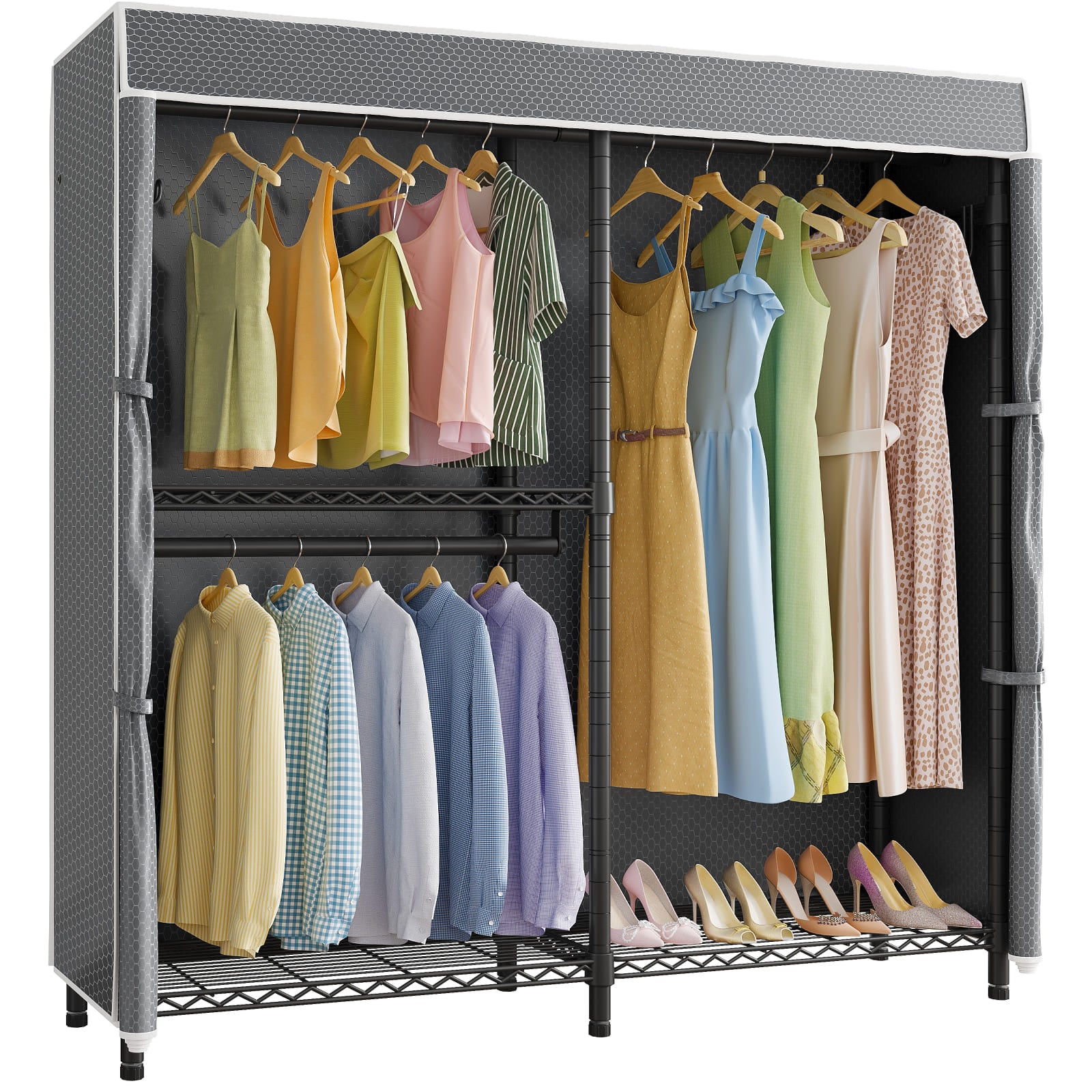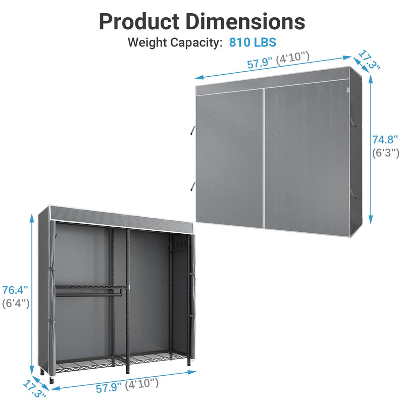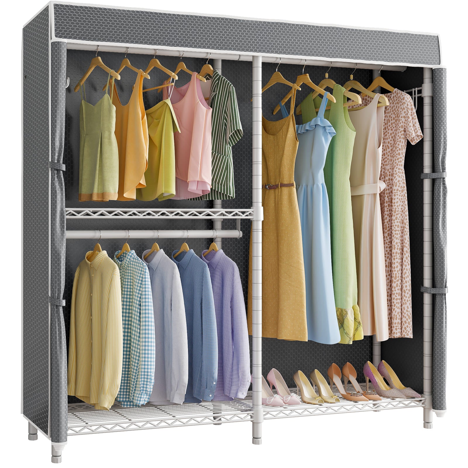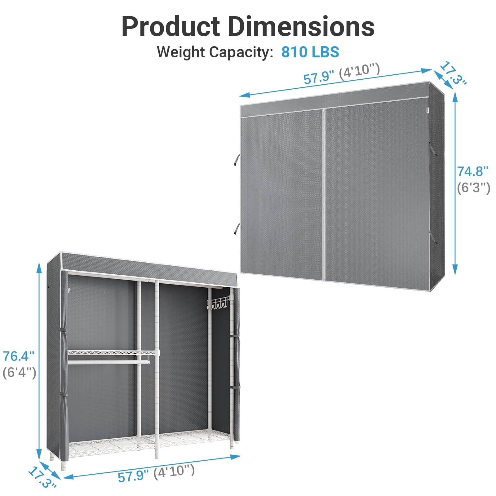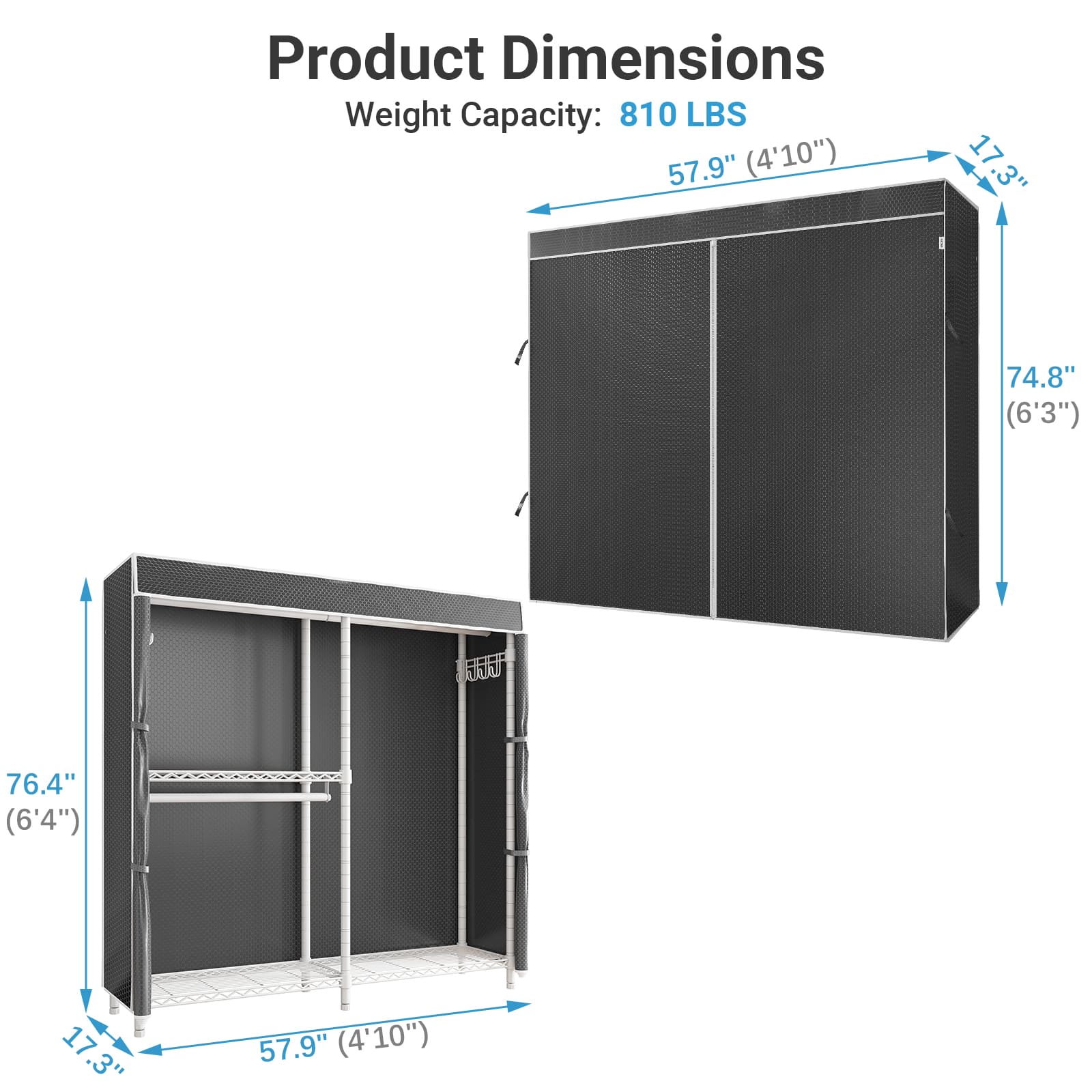 - 【Adjustable & Easy to Assemble】The metal wardrobe is designed with slip-sleeve locking system, which brings you adjustable wire shelves,adjusted up and down for your needs to store difference sized items. Easy to install it by following instruction, no tools are needed.