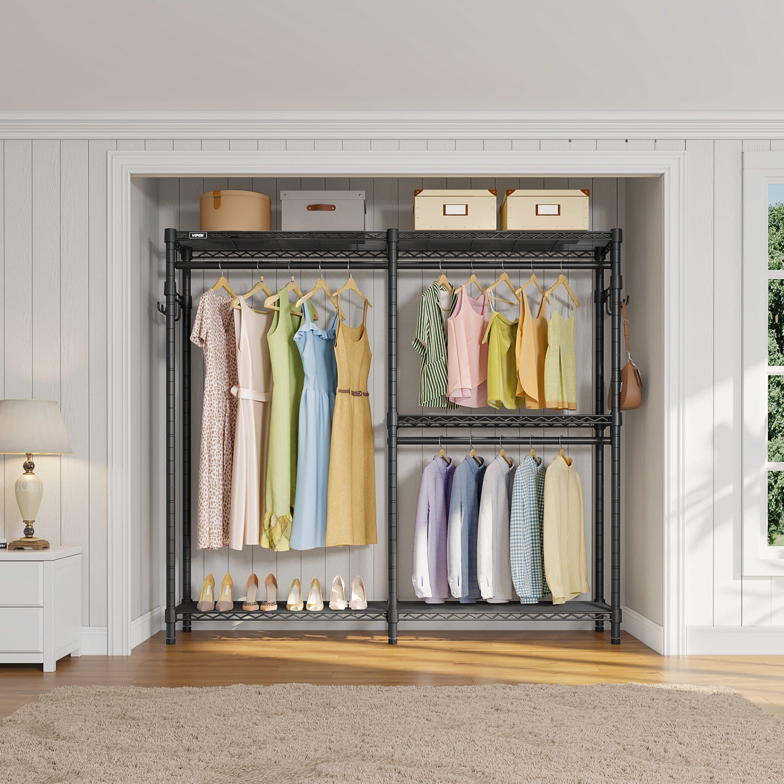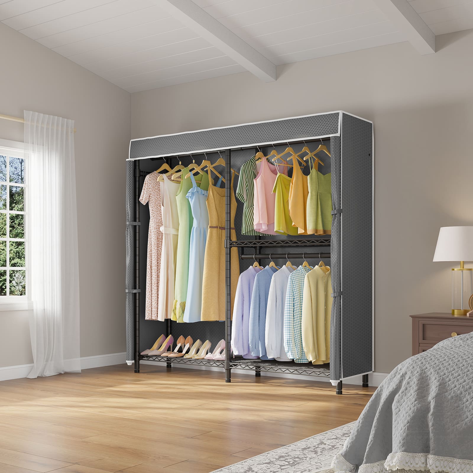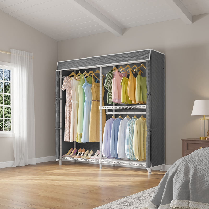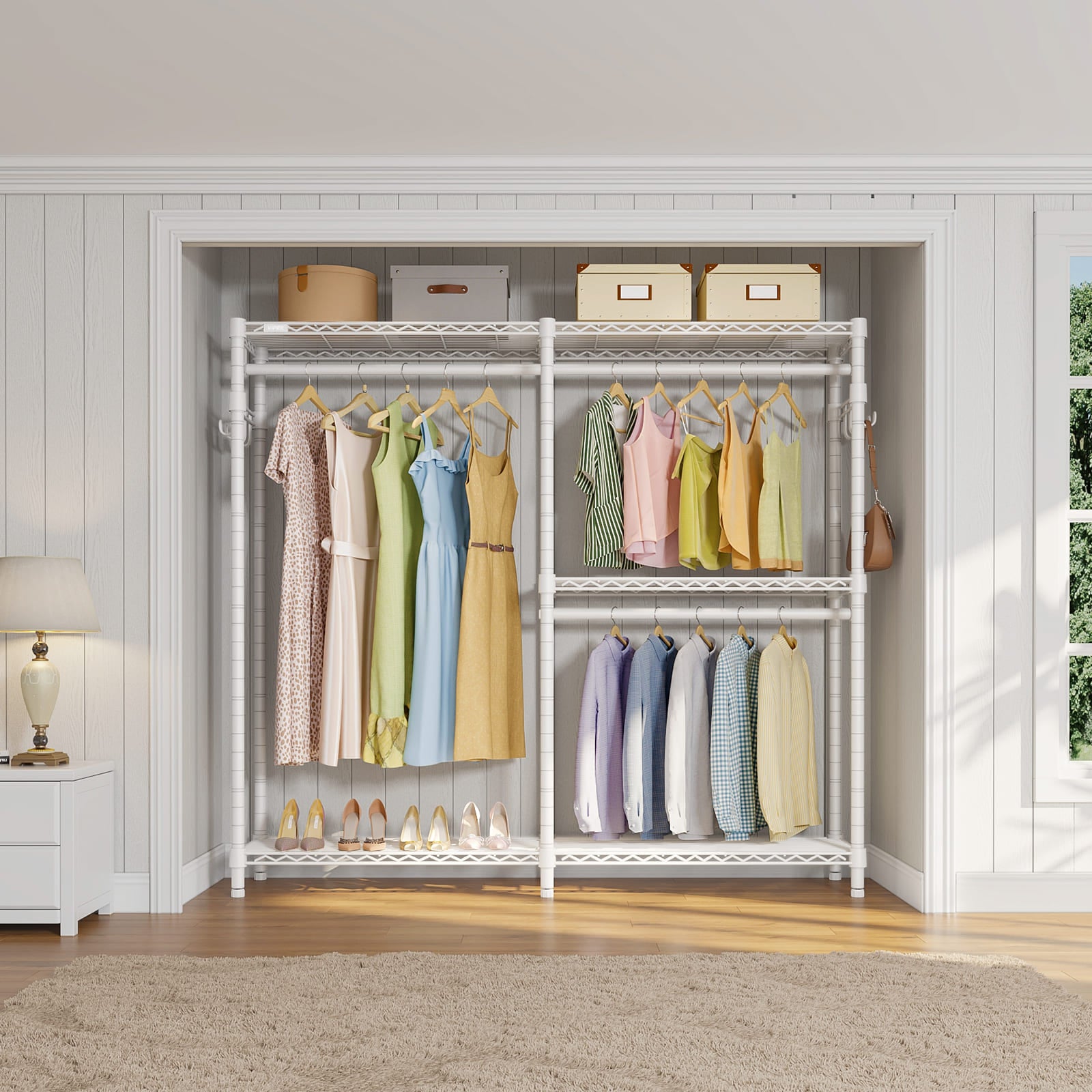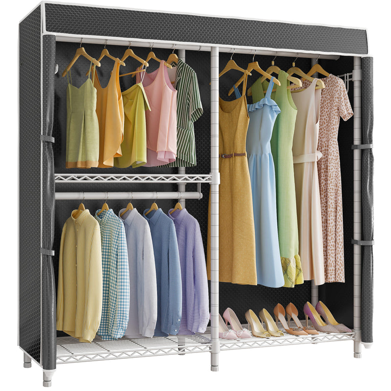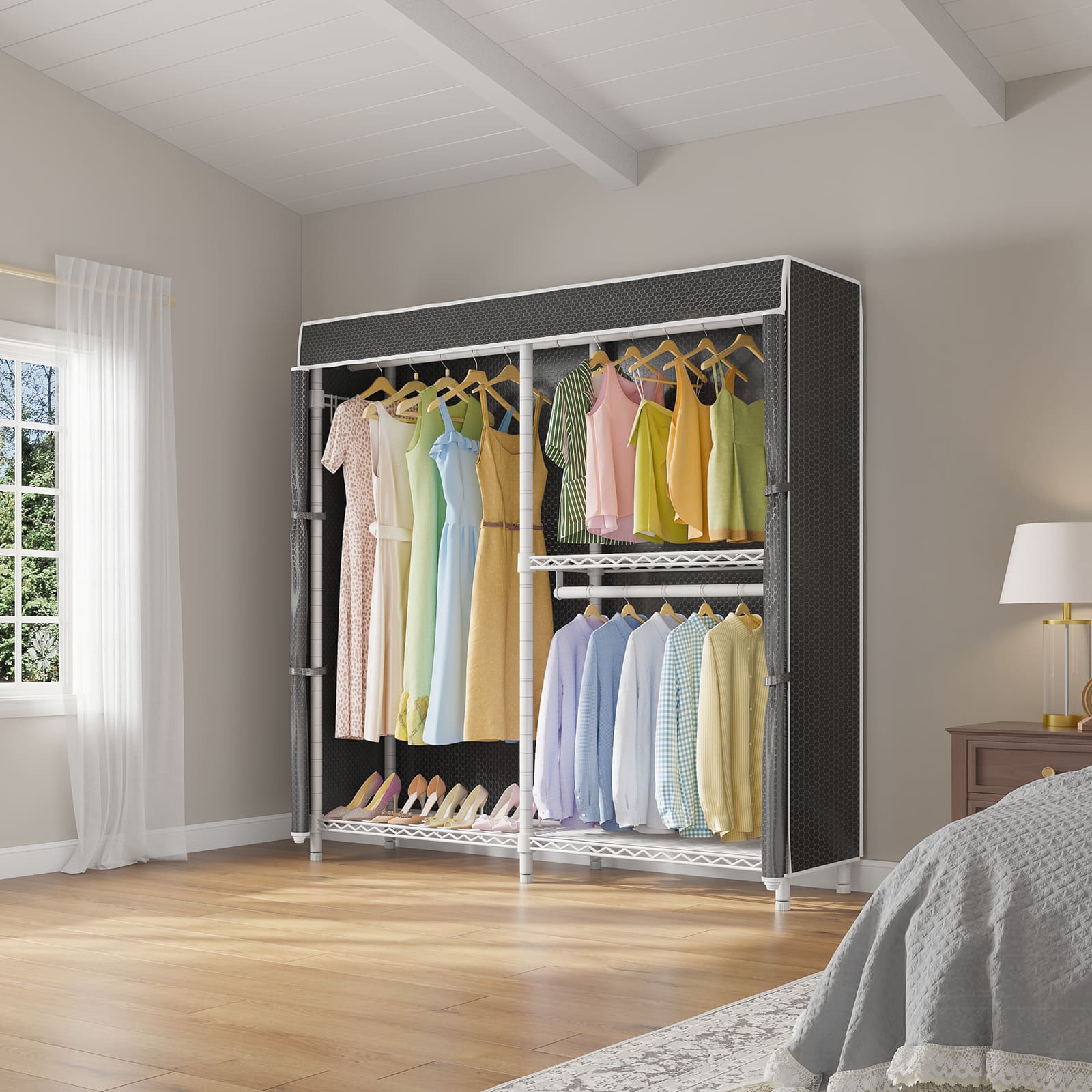 - 【Adjustable & Easy to Assemble】The metal wardrobe is designed with slip-sleeve locking system, which brings you adjustable wire shelves,adjusted up and down for your needs to store difference sized items. Easy to install it by following instruction, no tools are needed.