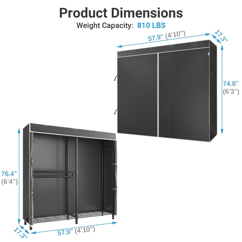 - 【Dimensions】57.9"L x 17.3"W x 76.4"H, max load 810lbs. The compact design is for bedroom, dorm, apartment and more small spaces.