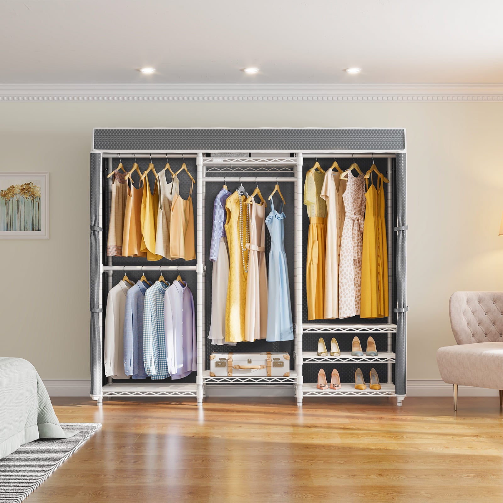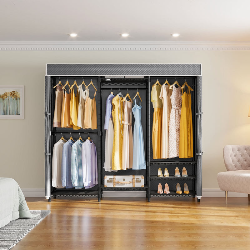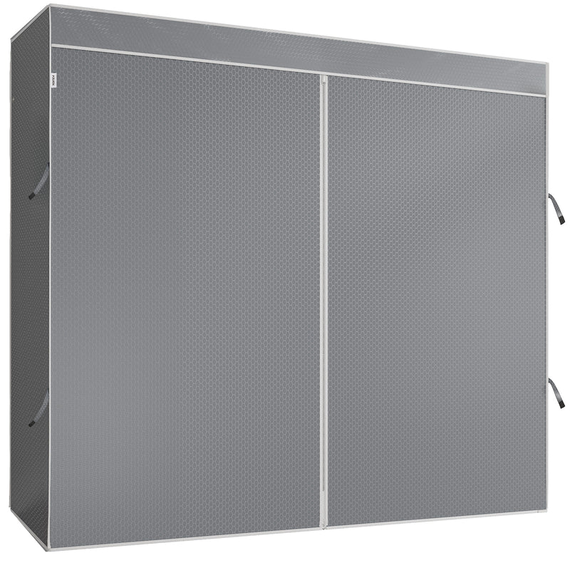 Zippered Dustproof Cover: Smooth nylon zipper start from top to the bottom and strap fix the parted curtains on both sides, which makes clothes easy to take out and hang in. You can zipper your racks closed to keep your private space if you have visiting guests. it's especially good for off-season storage and for anything white or other pricier garments.