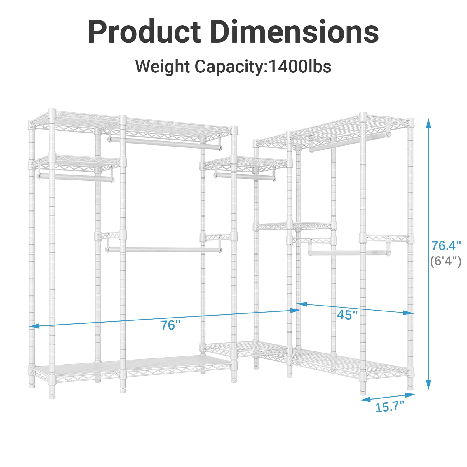 VIPEK L22 Clothes Rack is ideal for hanging heavy garments like suits and coats. Its 90° right-angle design fits snugly into corners, maximizing space while keeping your items neatly arranged.