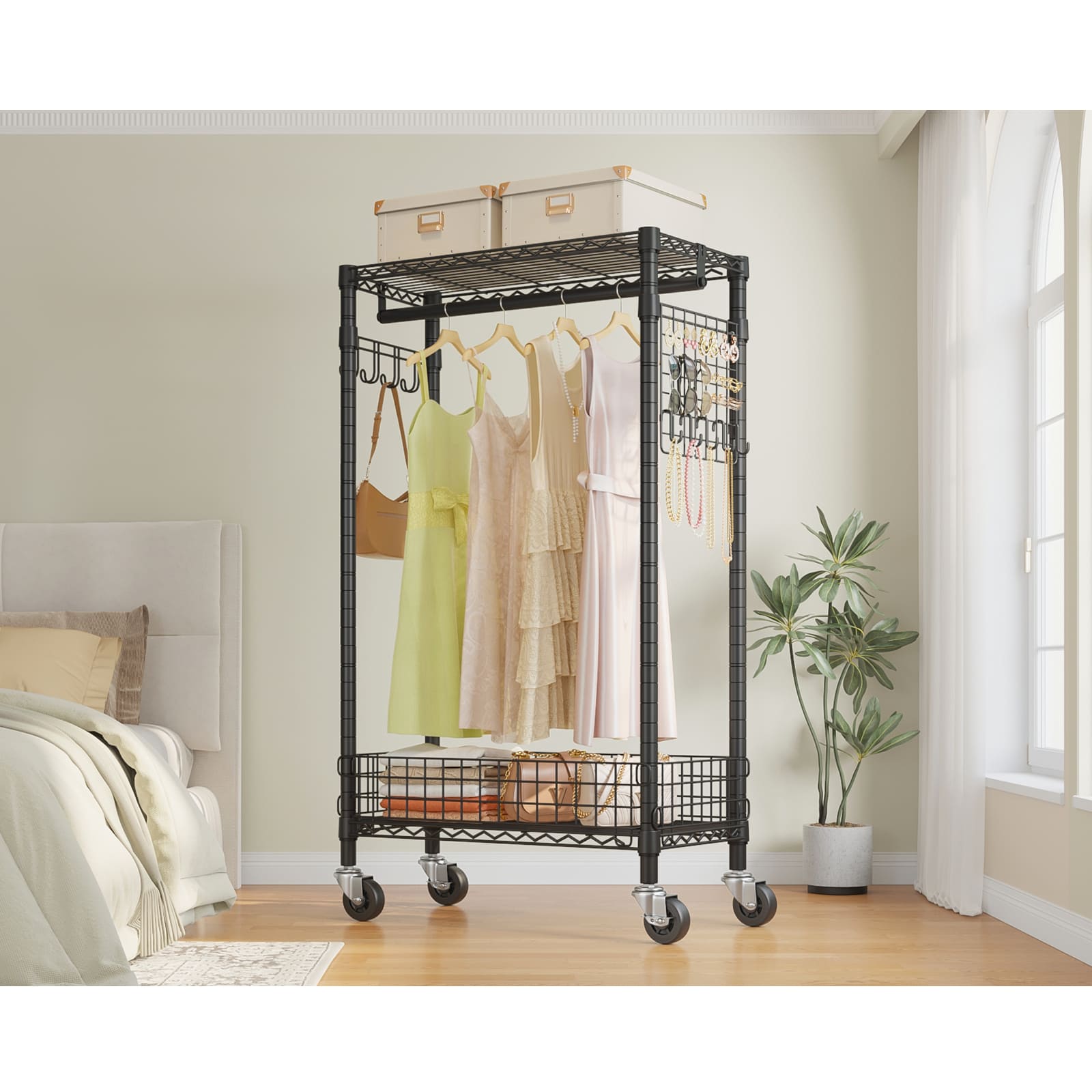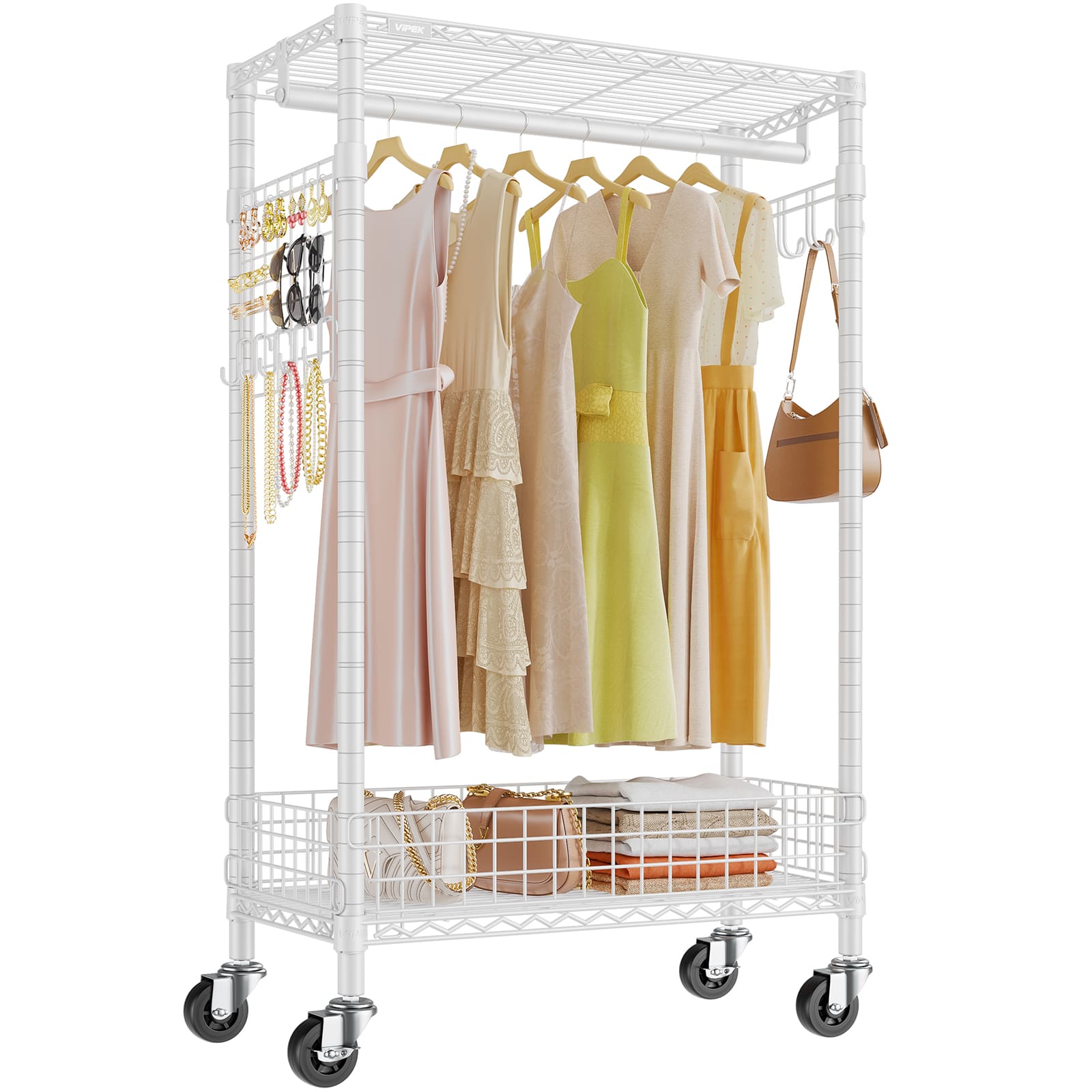 - 【Enhanced Protection & Convenience】 VIPEK clothes rack is built with durable carbon steel, and powder coated resists scratches, ensures durability for long-lasting protection. Together with anti-tip over accessories add an extra layer of safety. Including practical side hooks for hanging accessories