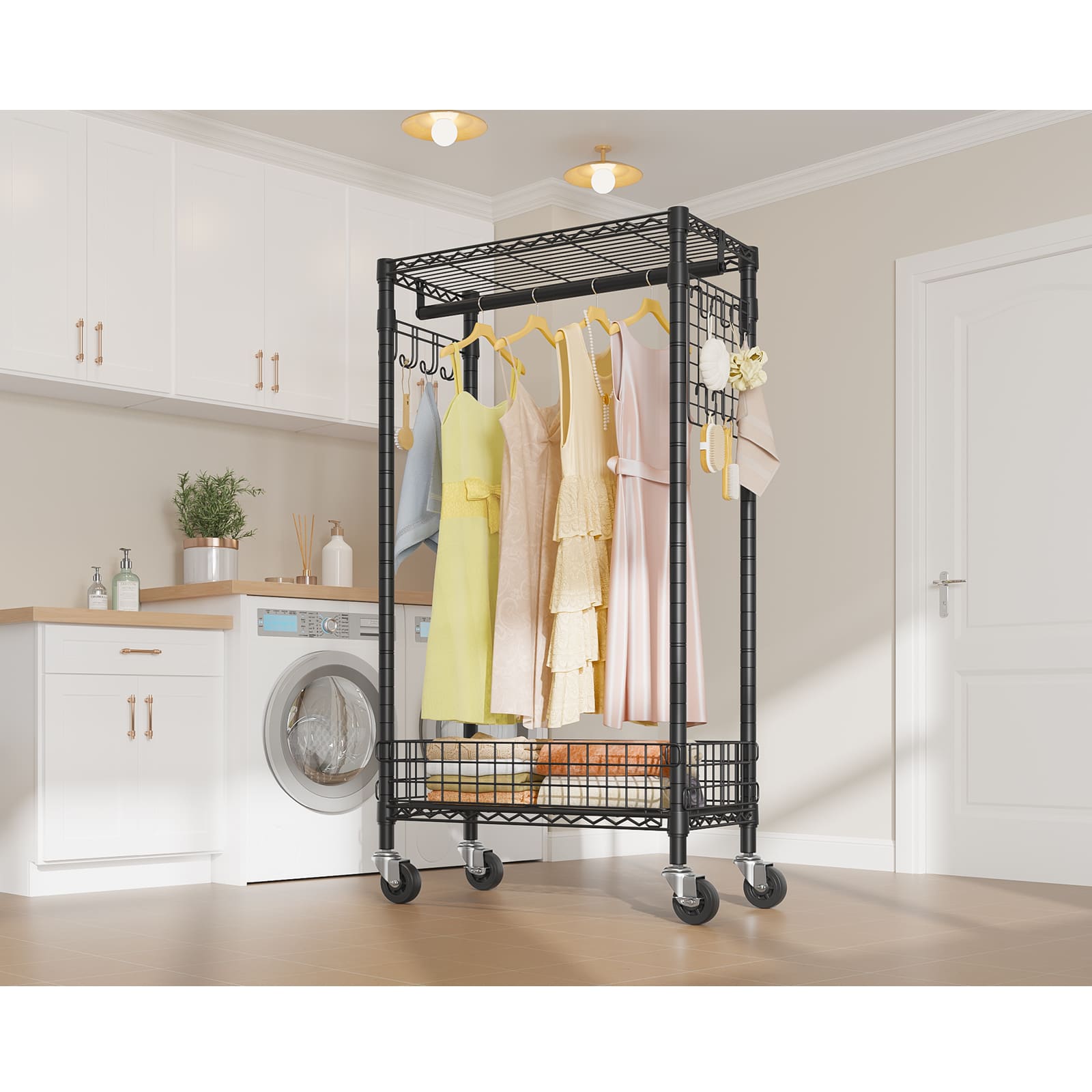- 【Removable Laundry Basket & Lockable Wheels】Ideal for laundry room organization essentials, the removable storage basket, can hold towel, blanket, dirty clothes, dog toys, pillow. Equipped with silent and 360°movable lockable wheels, smooth transport dirty clothes to the laundry room