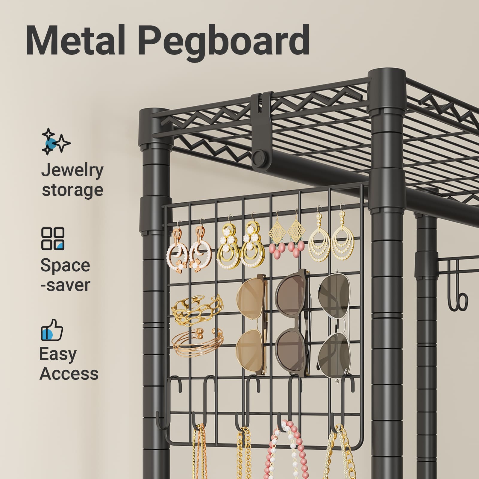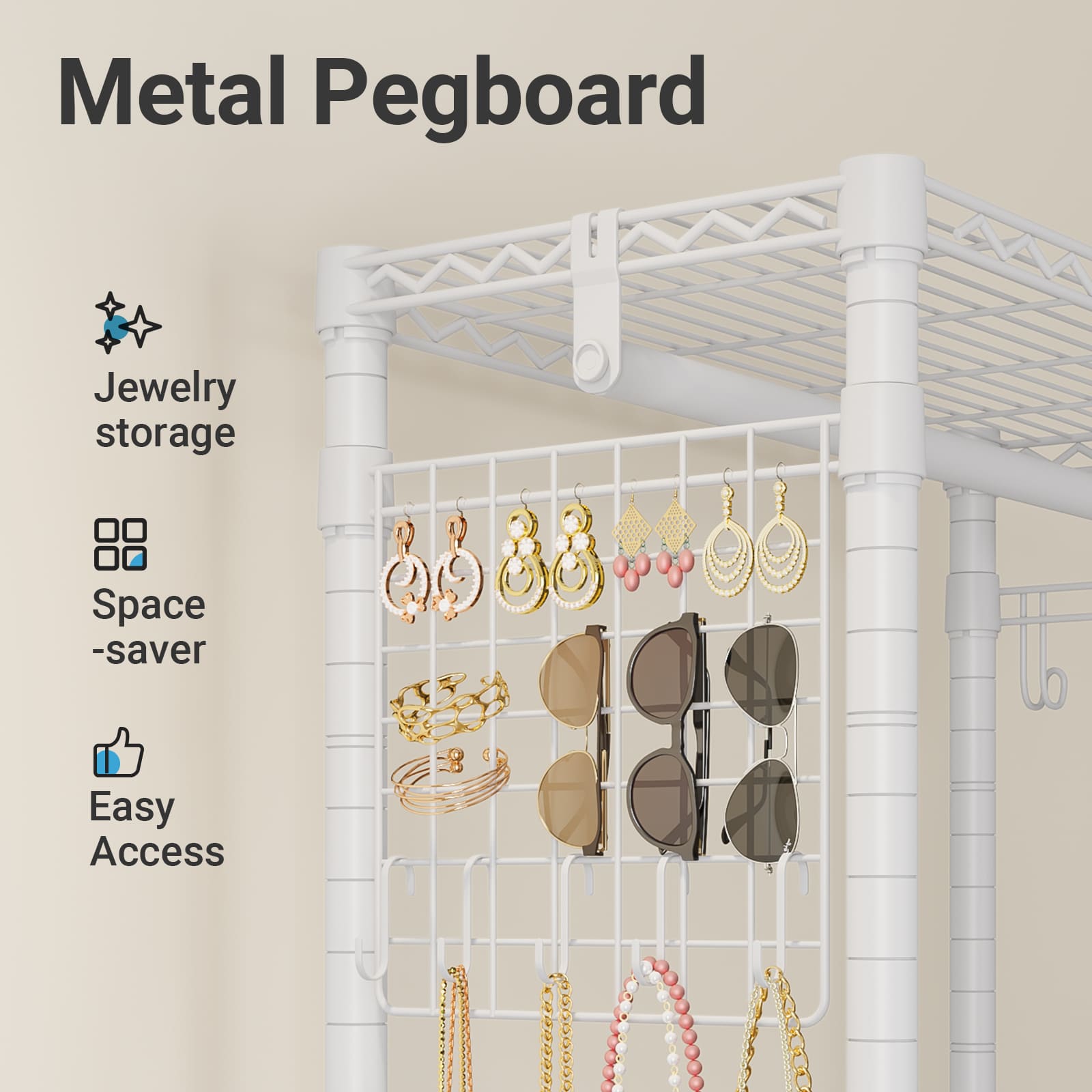 - 【Jewelry Pegboards Organizer】 Pegboard comes with 5 hooks, the eye-catching design ensures easy visibility and quick access, offering convenience and efficient organization – Perfect Earrings, Necklaces and Bracelets Holder for woman