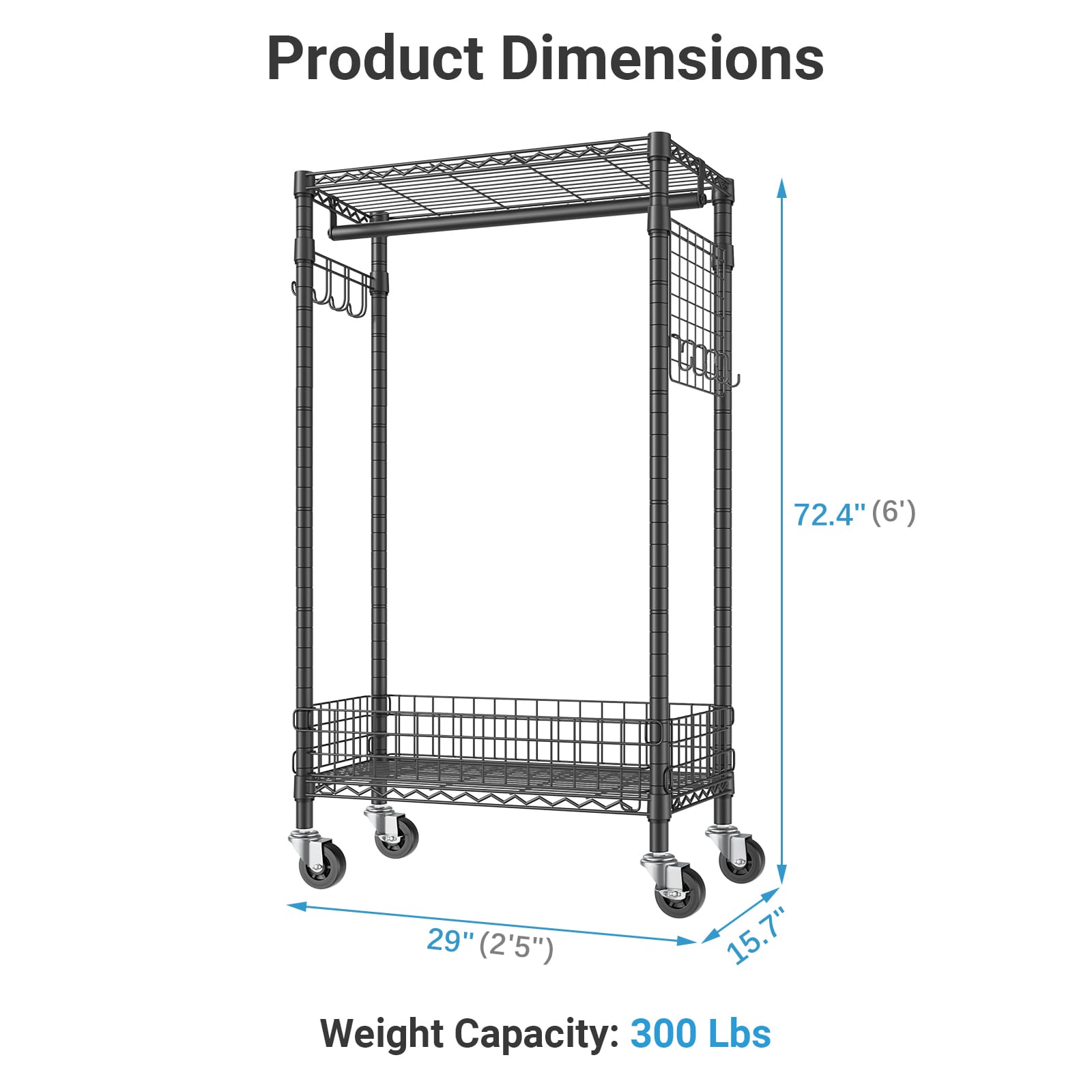 - 【Space-Saving Design】 Featuring compact size (29.1"L x 15.7"W x 72.4"H), holds up to 300lbs, maximizing space efficiency, this garment rack is ideal for small spaces, apartments/dorms, hallway, laundry room, bathroom, is a great space-saver and can easily be moved around, making it ideal for re-decorating or moving