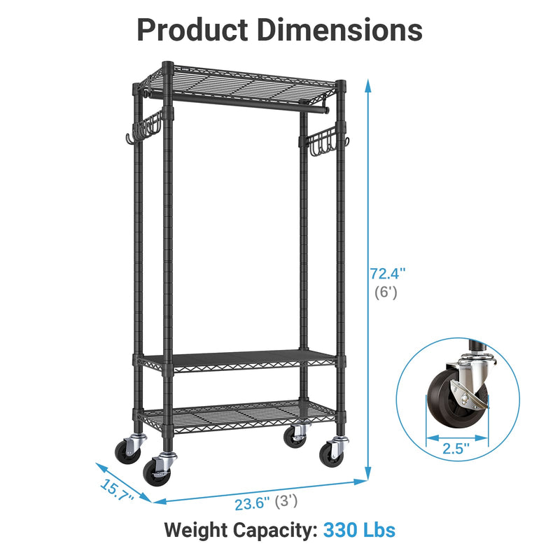 - 【Silent Mobility & Lockable Wheels】 Equipped with 360° silent and movable wheels(2.5"), this rack can be easily relocated, suitable for hardwood floors. The lockable wheels provide added stability, preventing unwanted movement and ensuring safety during use