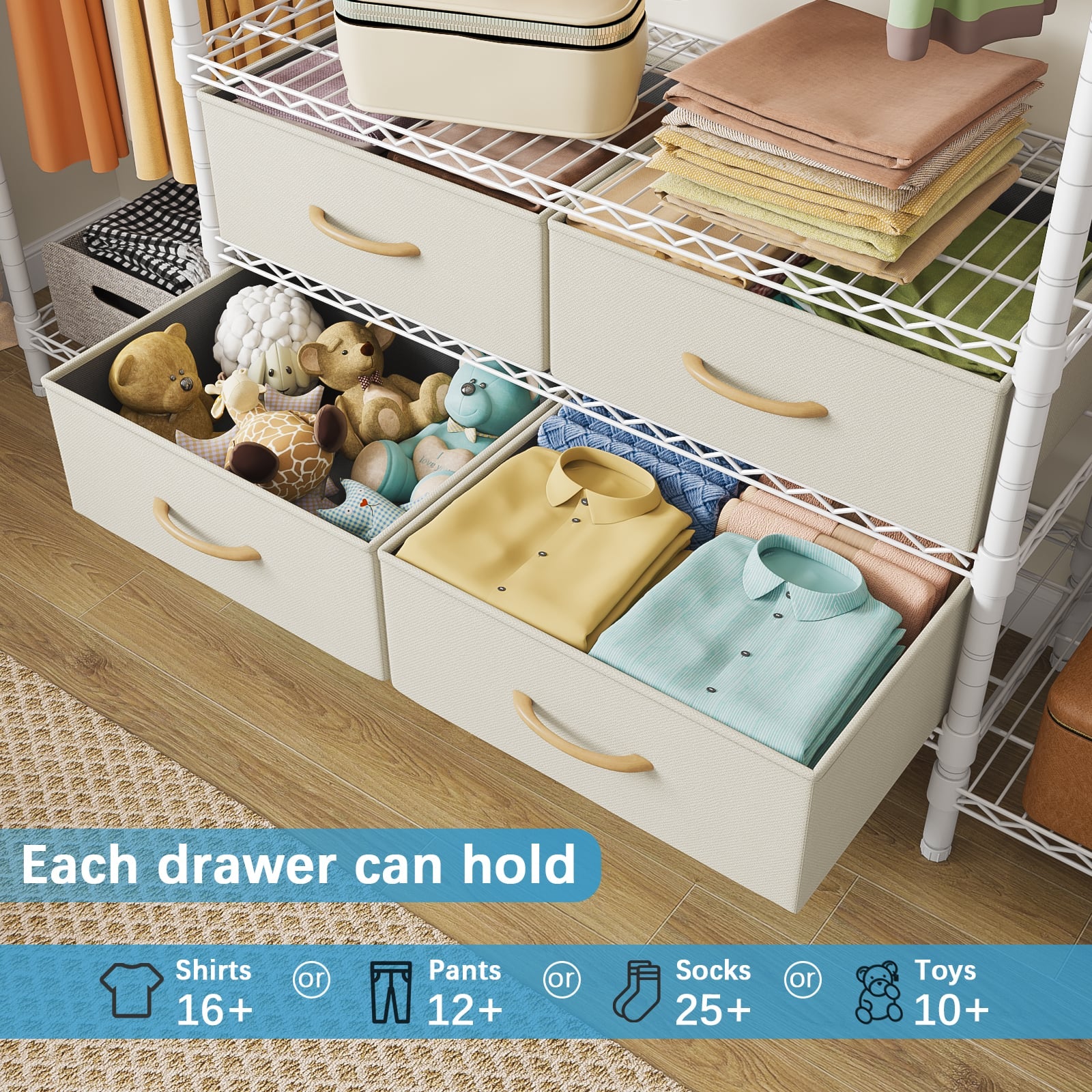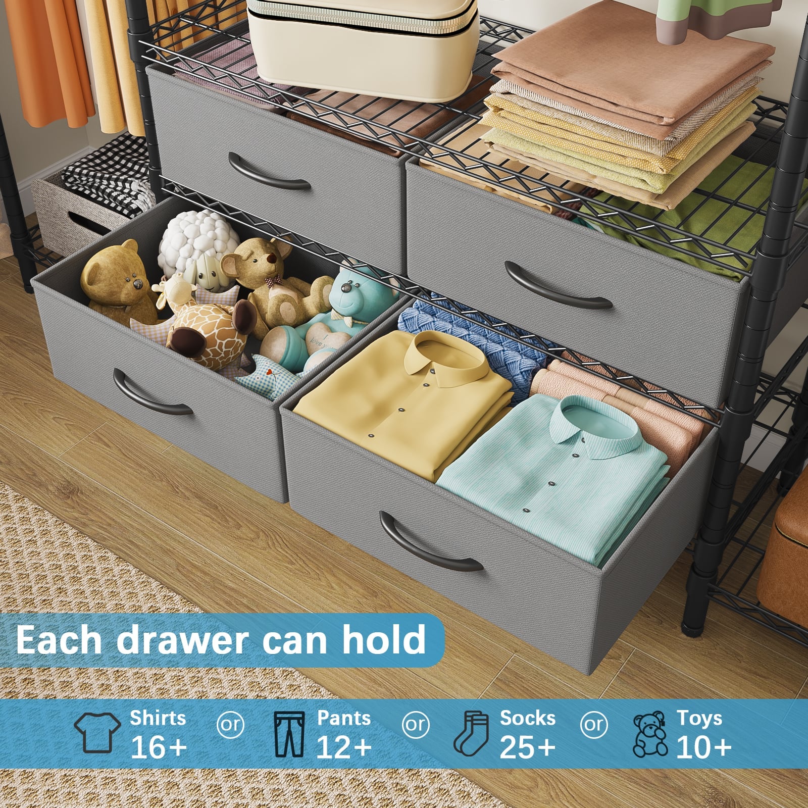 - Package Included: 1 set garment rack, 4pcs fabric storage boxes.
