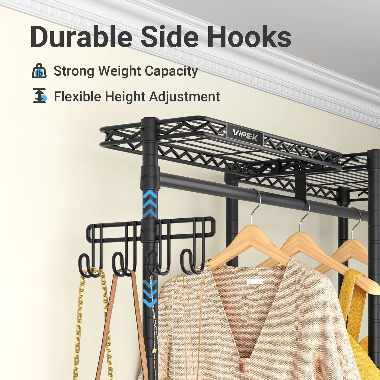 Say goodbye to cluttered closets and hello to a streamlined, organized daily routine. Experience the convenience and satisfaction of staying neat and tidy with VIPEK Garment Rack.