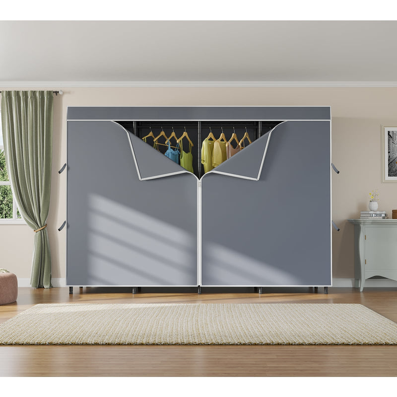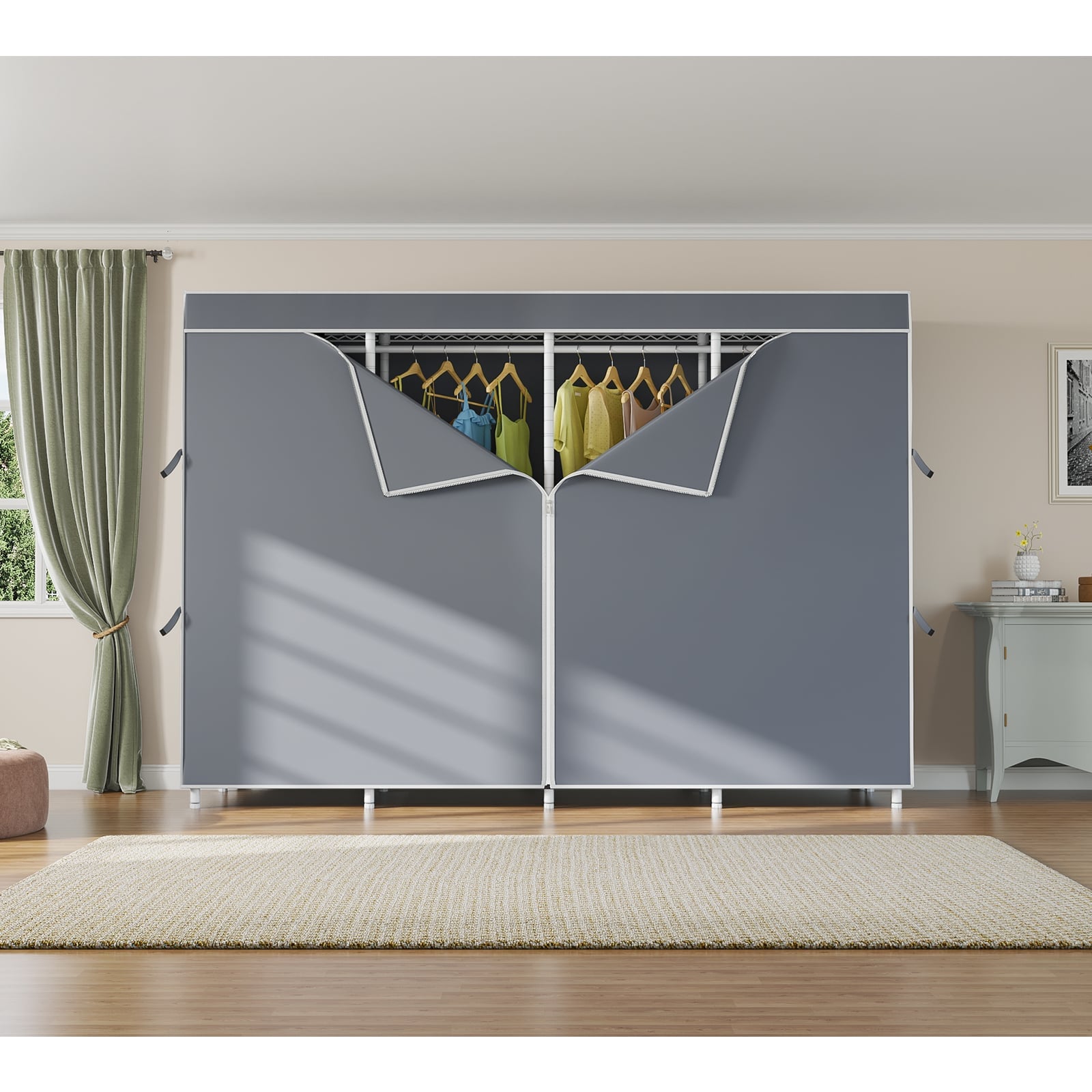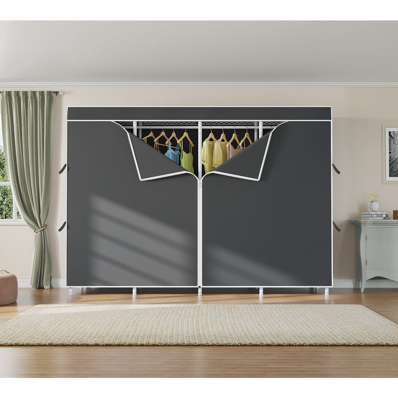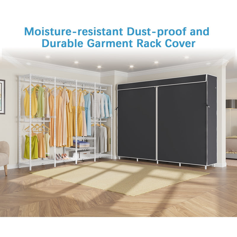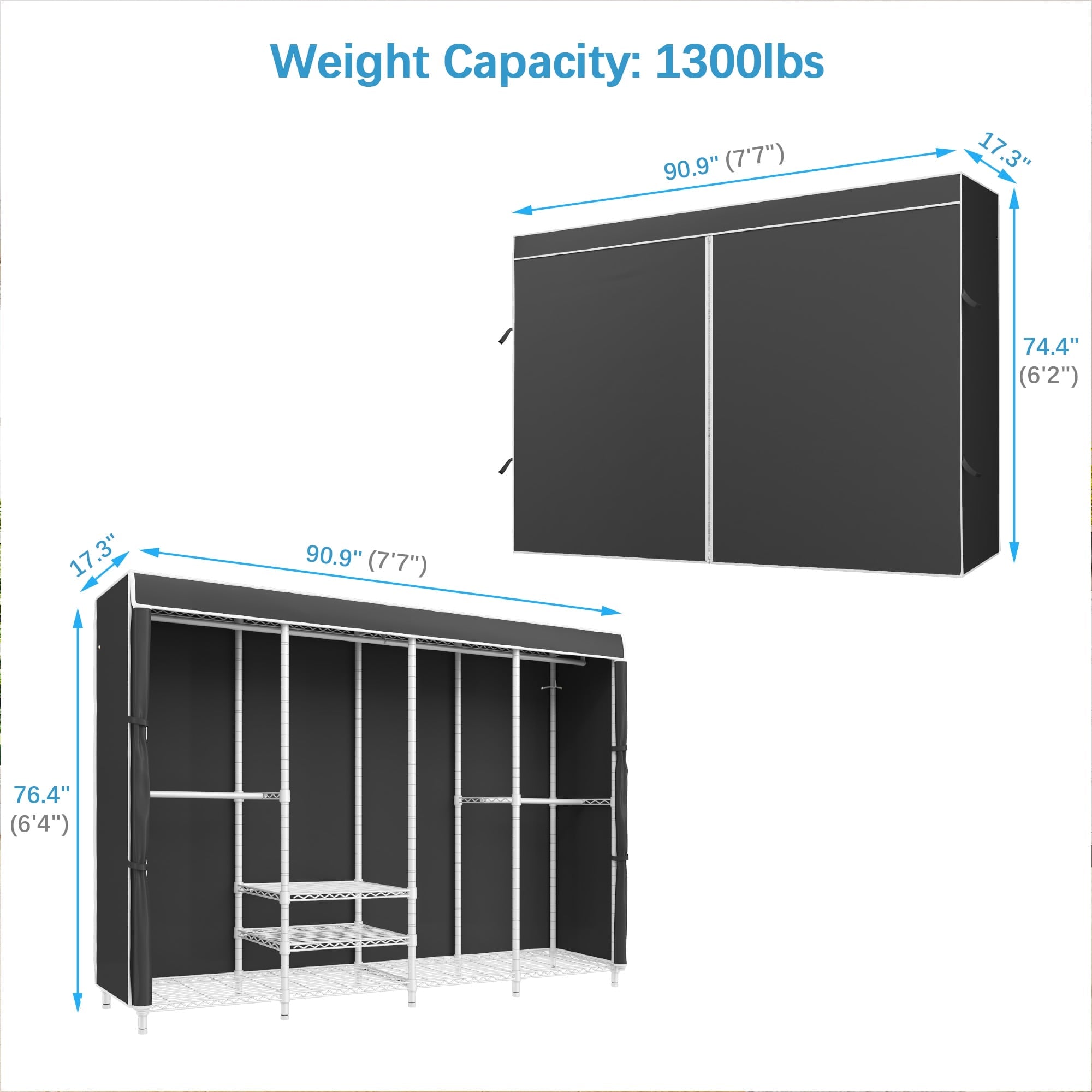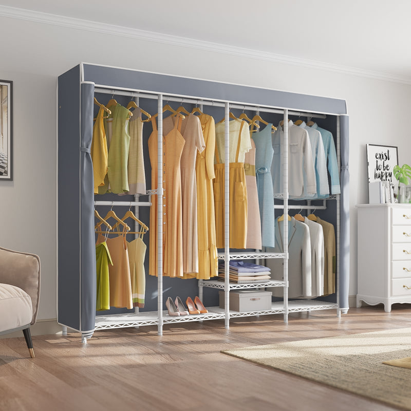 - All-in-one Multifunction Closet Rack: 4 Tiers Extra Large Wardrobe Closet V40 offers you various storage area to place your clothes, accessories, shoes, etc. It features 6 height adjustable shelves for extra storage capacity, 4 detachable hanging bars that easily accommodates to the length and size of your garments.