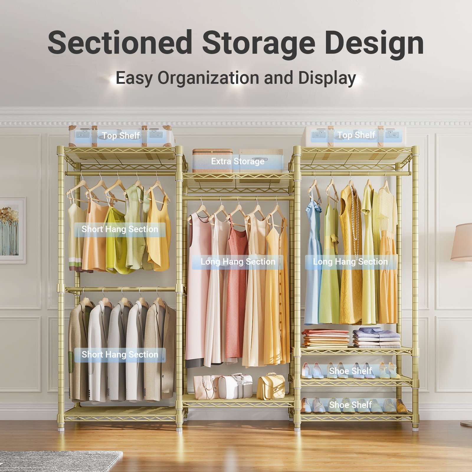 - Sturdy & Reliable: Made of high quality iron, it features stable, sturdy and reliable. Easy access in bedroom, cloakroom, clothing store, laundry room, walk-in closet and more.