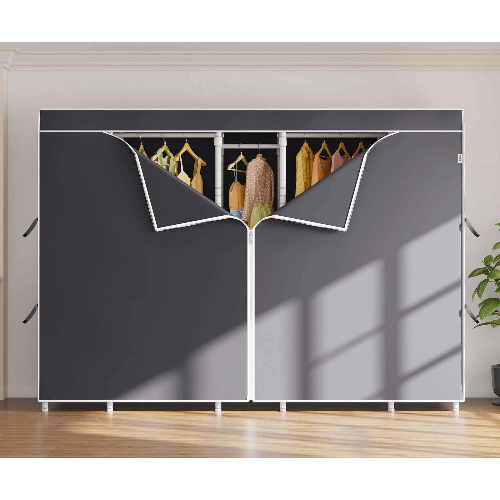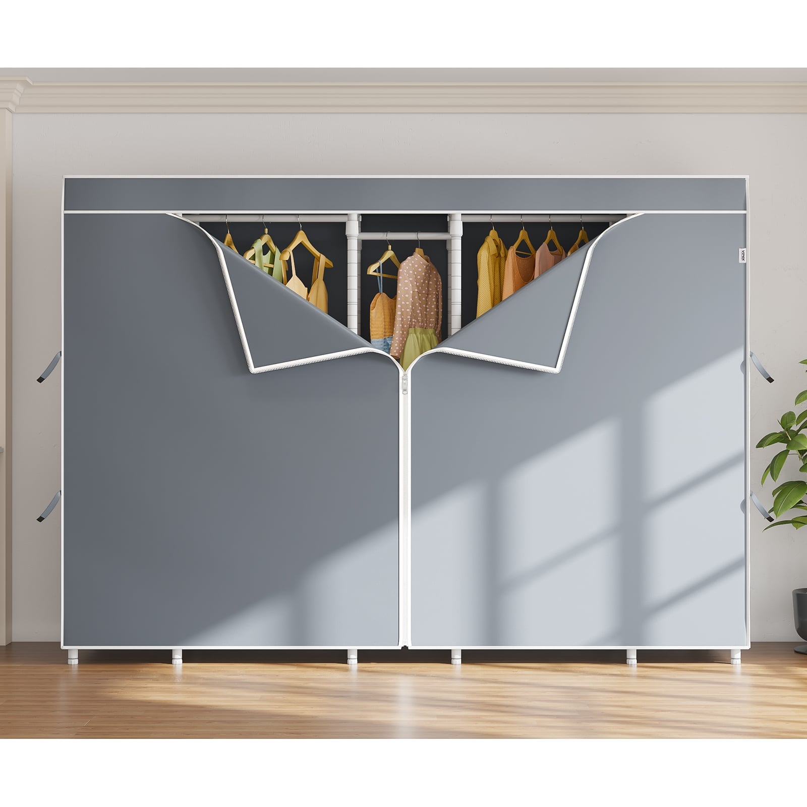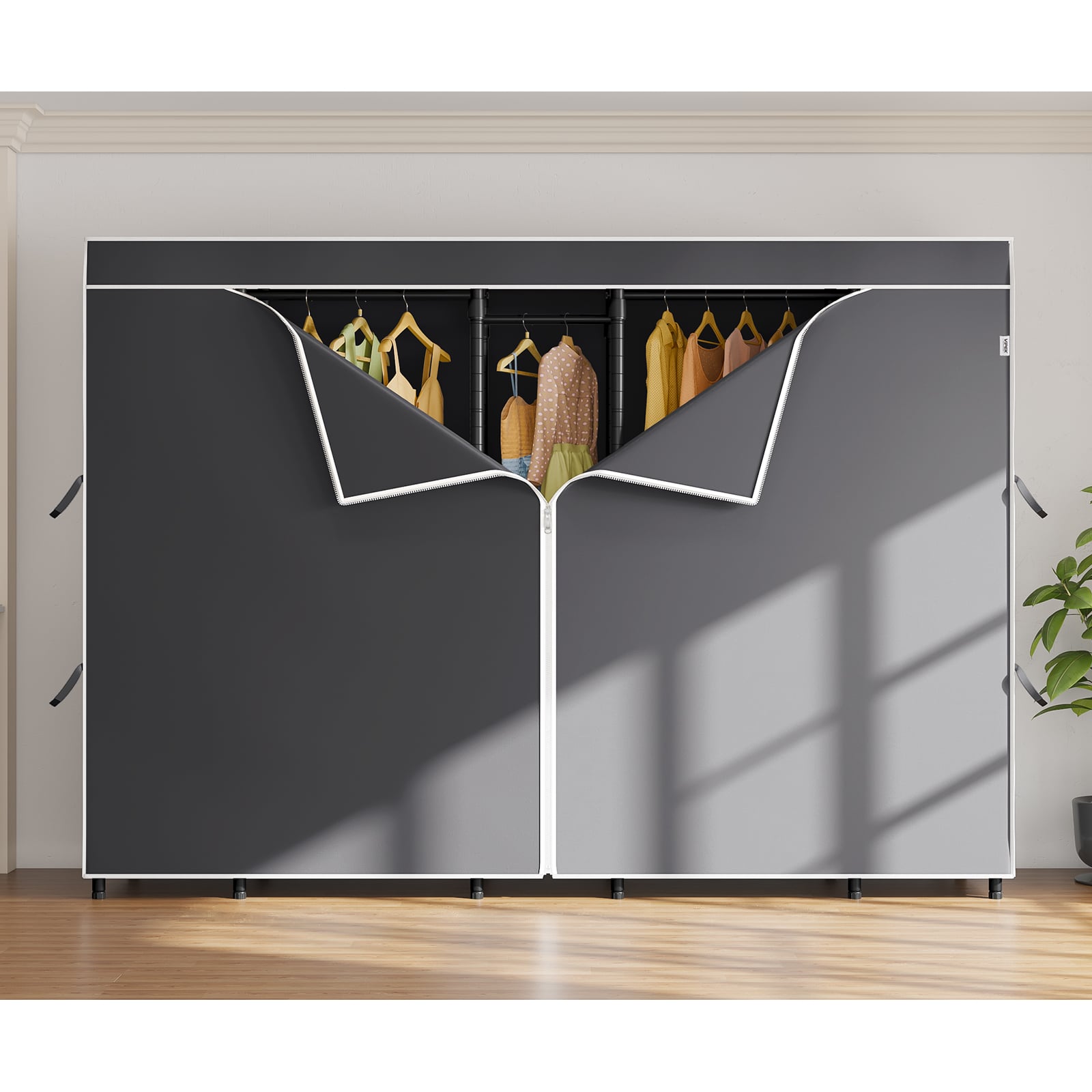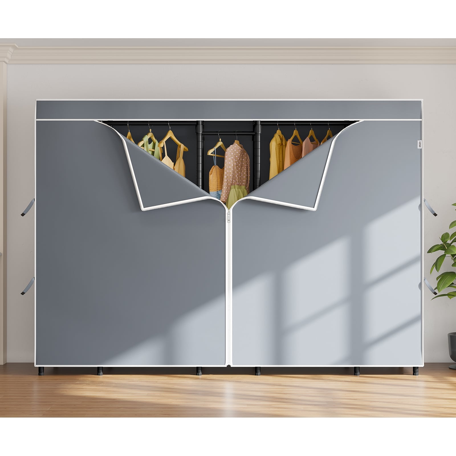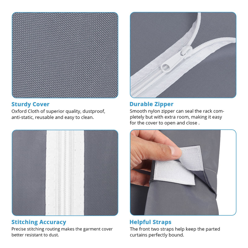 - Oxford fabric Zippered Dustproof Cover: Dustproof, lightproof, wrinkle-resistant, and anti-static. Oxford fabric with high-density stitching for easy operation and durability. Straps secure curtains for easy access to clothes. Ideal for off-season storage and protecting garments. Close the zipper to keep your space private.
