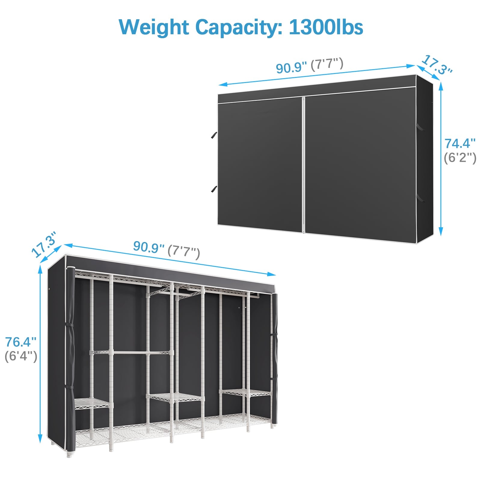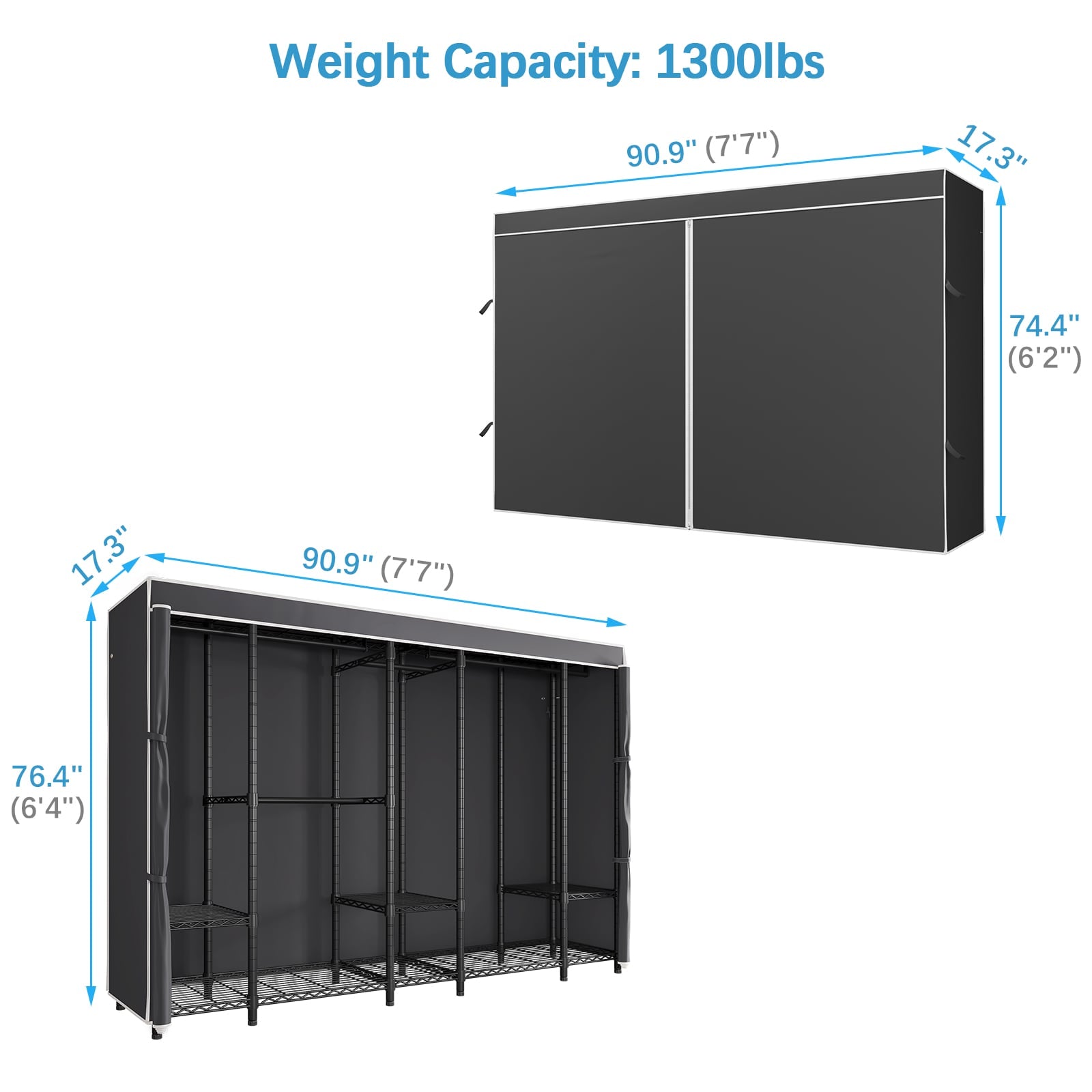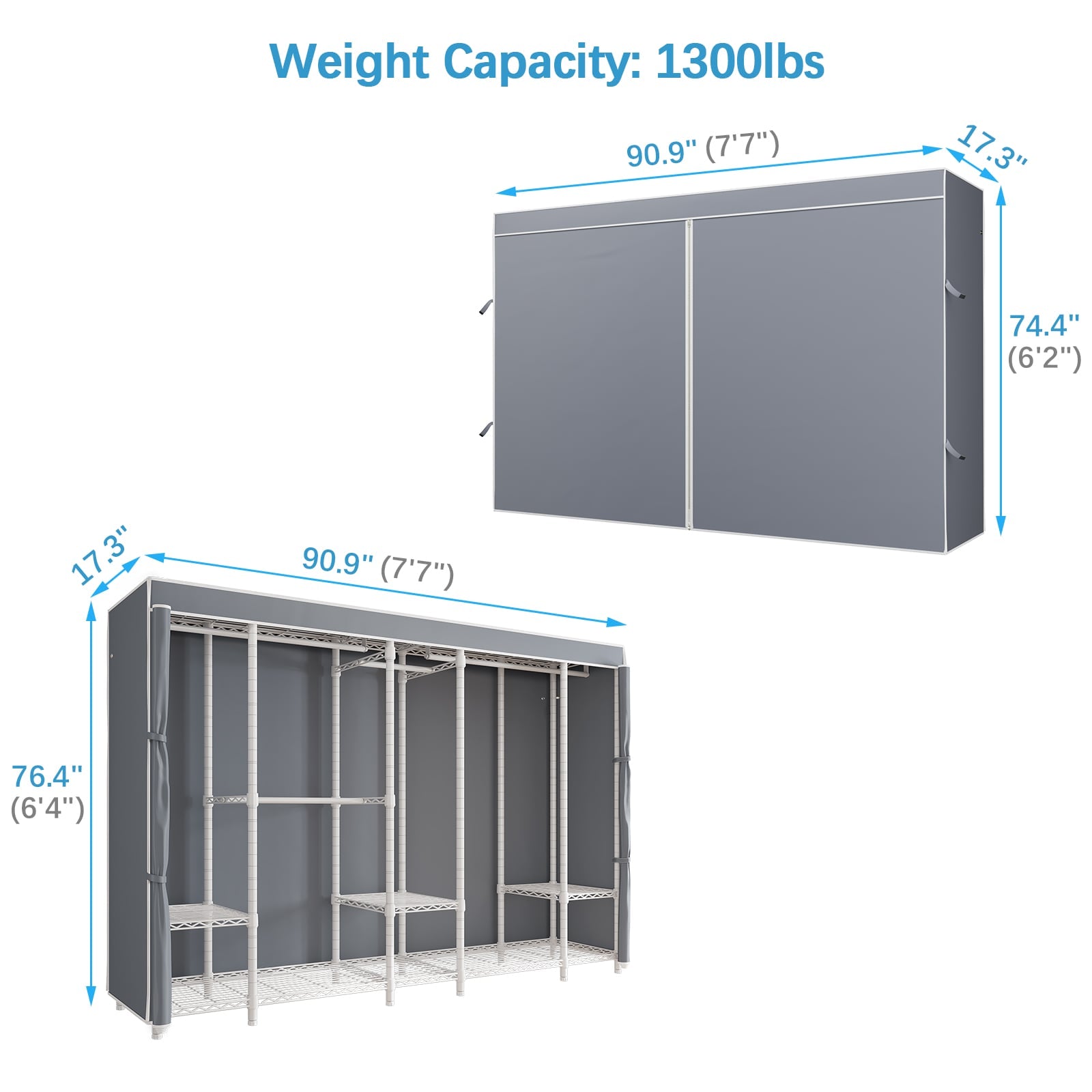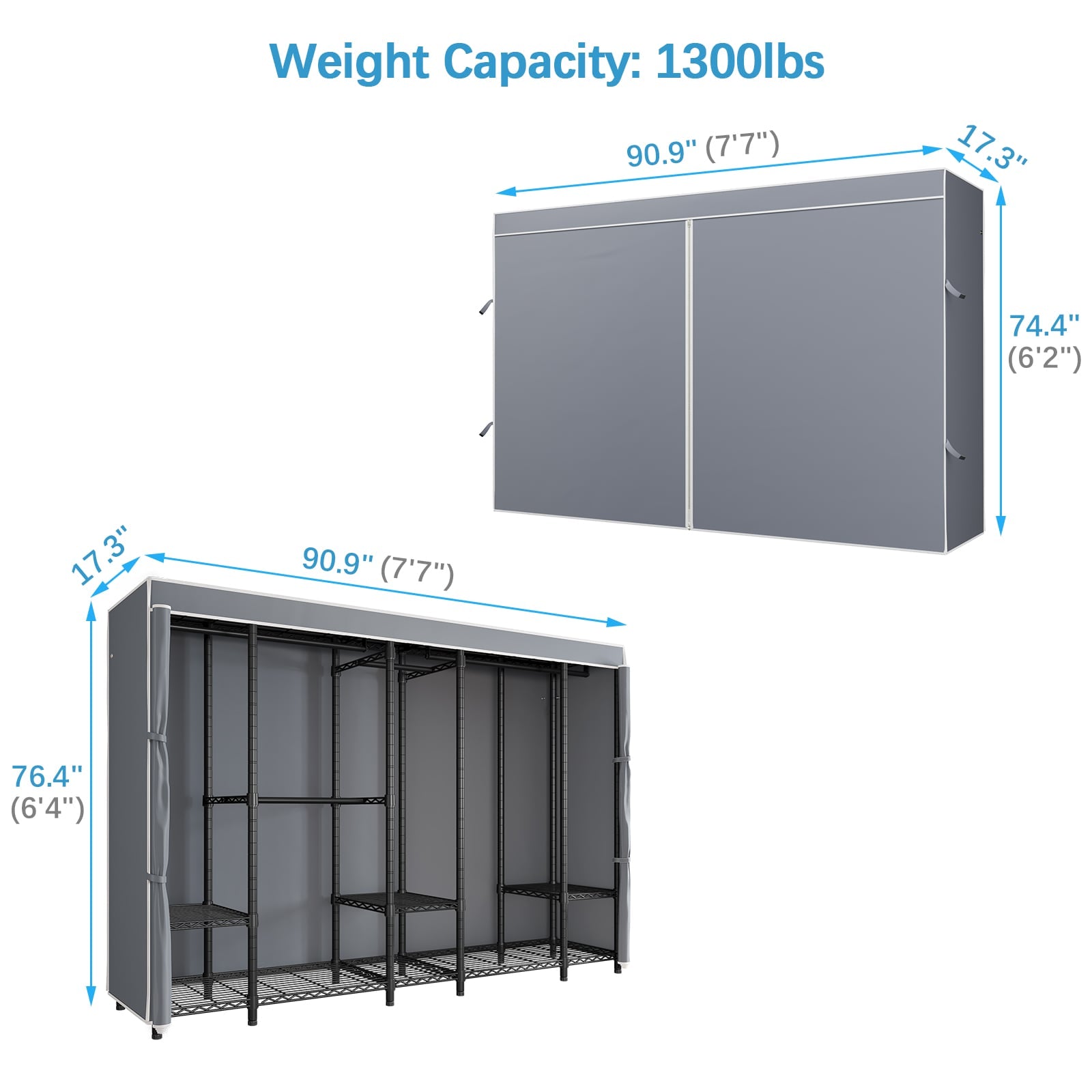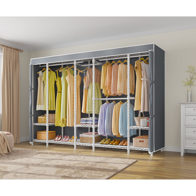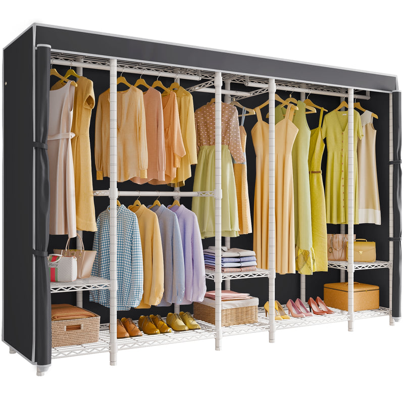 - Extra Large Freestanding Closet: Measuring 90.9"L x 17.3"W x 76.4"H, the VIPEK V50 Covered Clothes Rack provides ample space for all your clothing storage needs.