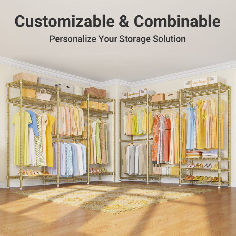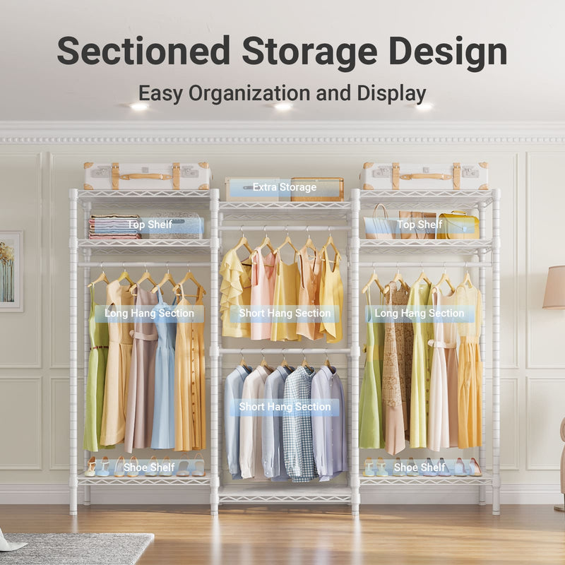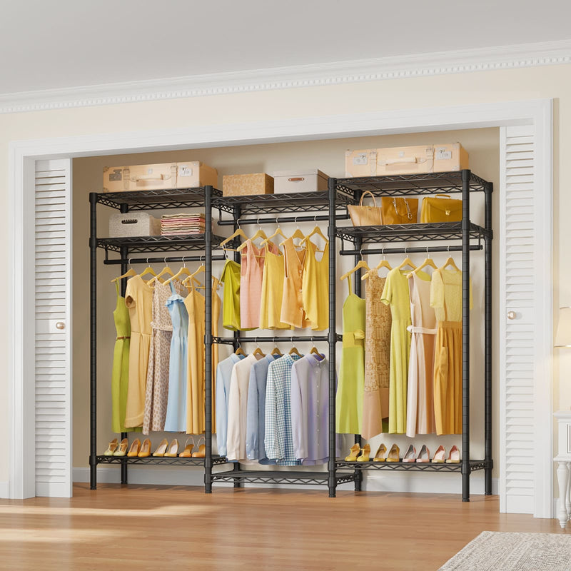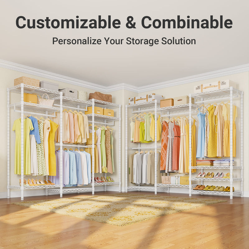 VIPEK V5i Heavy Duty Clothes Rack is perfect for bedrooms, walk-in closets, and laundry rooms. The 5 adjustable wire shelves and 4 hanging rods are ideal for organizing clothes, accessories, and bedding.