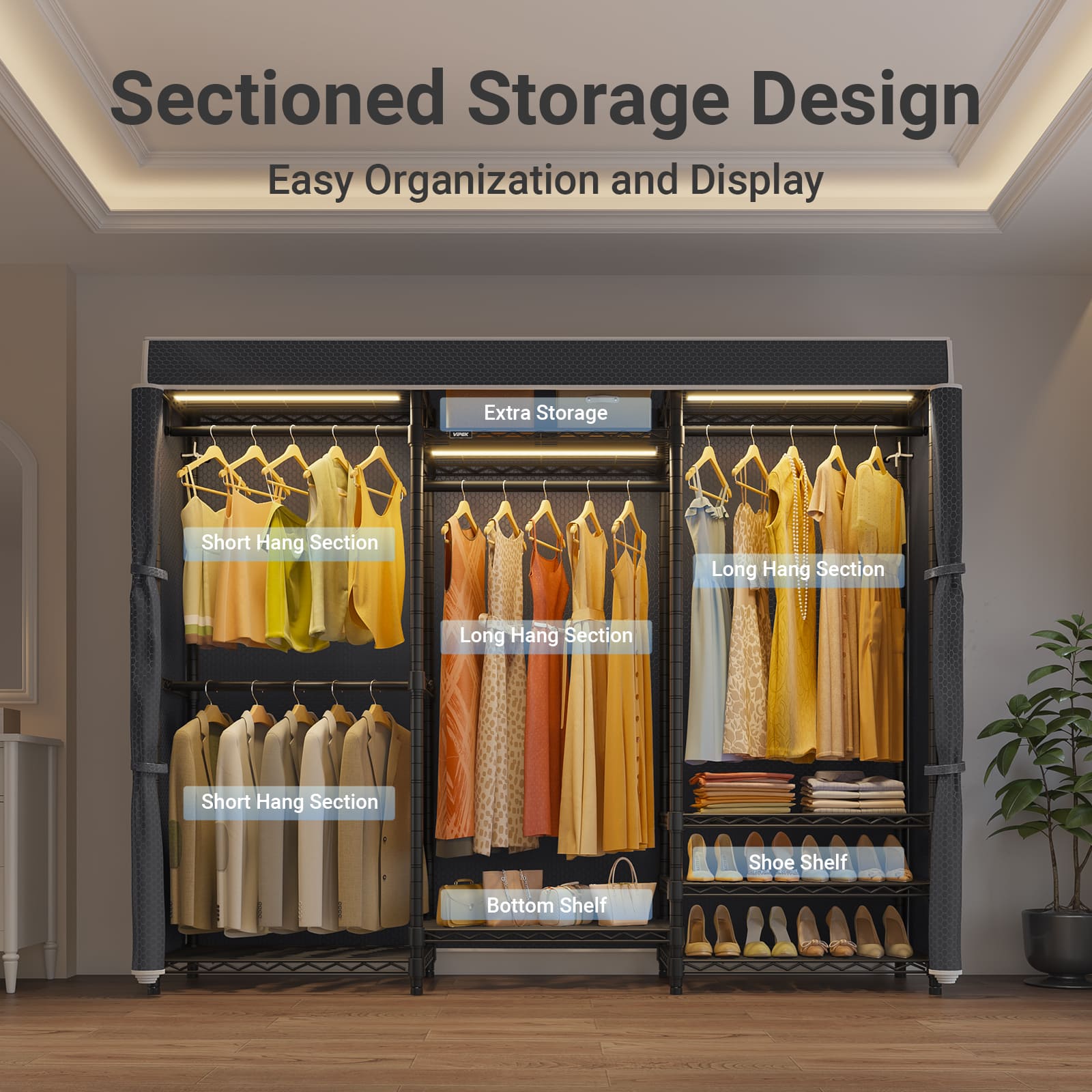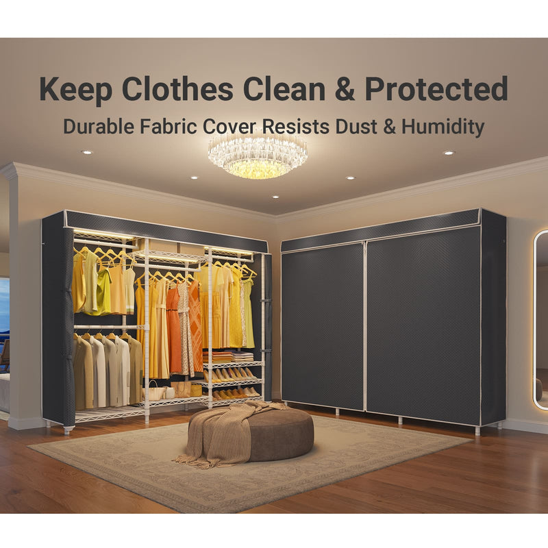 VIPEK V5L is updated by V5, featuring dual rows of light beads and a glare-free frosted cover, so the cabinet lights are bright, and eye-protection. Unlike the fixed brightness of others', our closet lights are step-less dimming. Simply use the control box to dim or easily brighten your lights to the desired level. Zippered Dustproof Cover are extremely breathable to keep clothes fresh and your belongings free from dust.