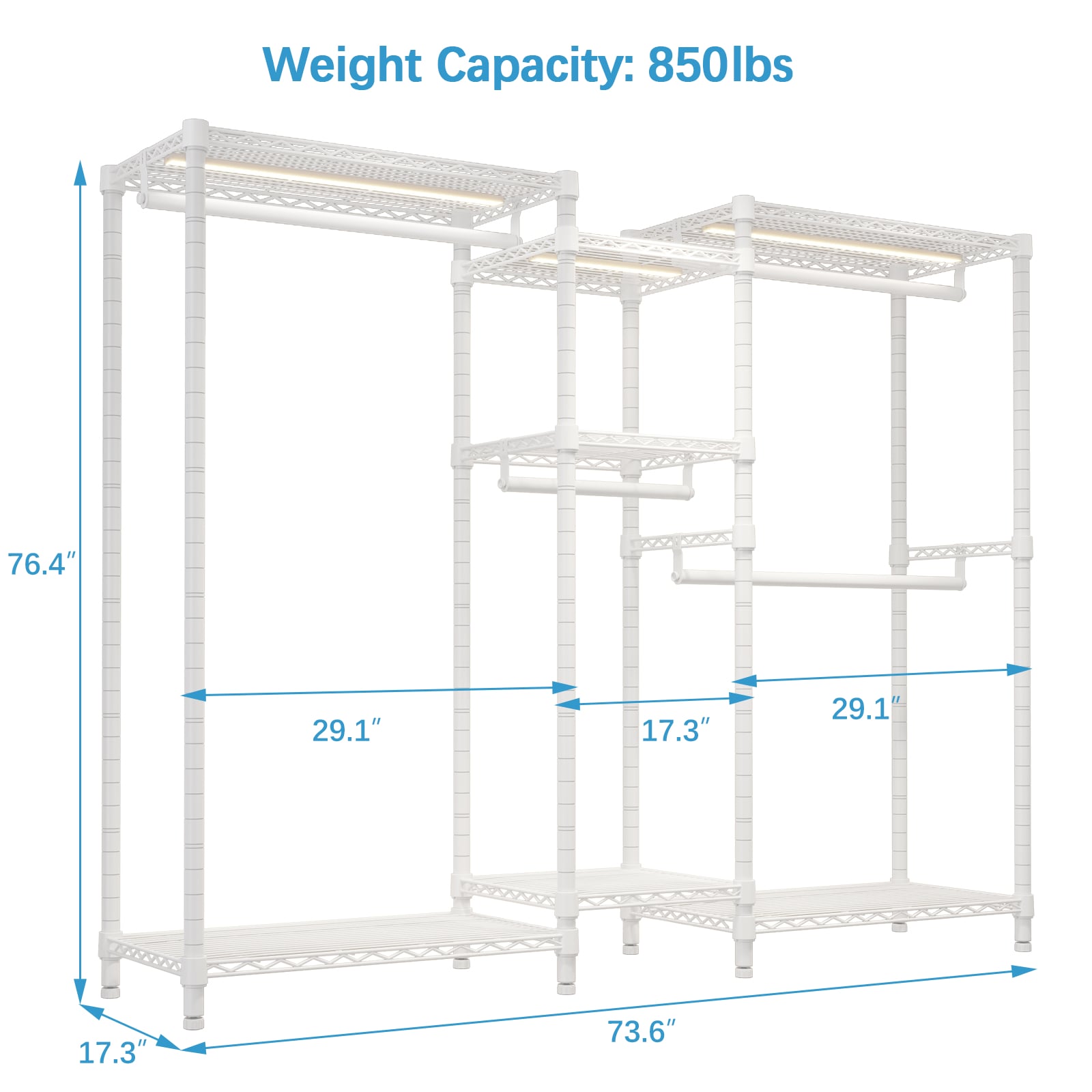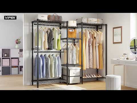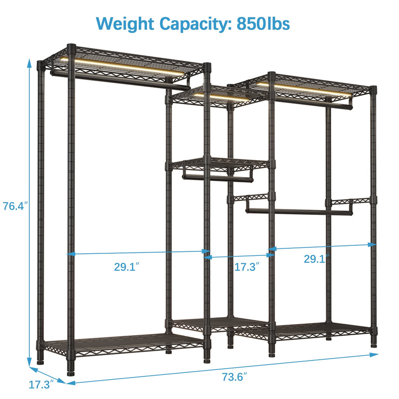 - Design and Strong Load Capacity -- VIPEK V6L portable closet for hanging clothes dimensions 73.6''Lx17.3'W'x76.4''H, max load capacity up to 850 lbs. This compact metal clothes rack provides ample space for all your clothing storage.
