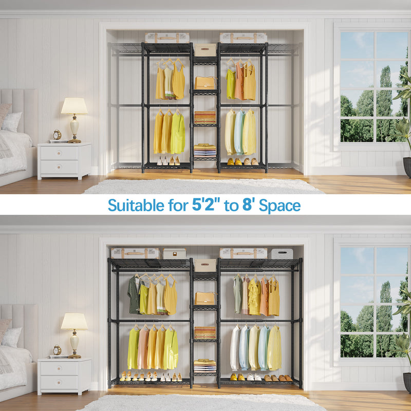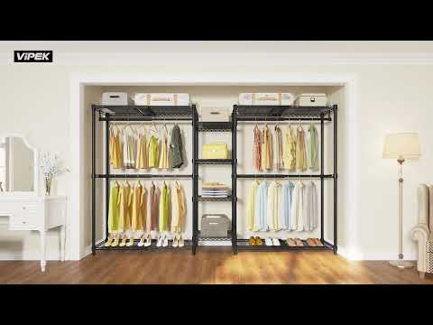 - Maximize Your Space: With 4 expandable closet shelves and 4 extendable hanging rods, VIPEK X3 freestanding closet rack adjustable from 5'2" to 8' befitting a large space. It provides flexible solutions for you to maximize storage in a limited location to make full use of your space