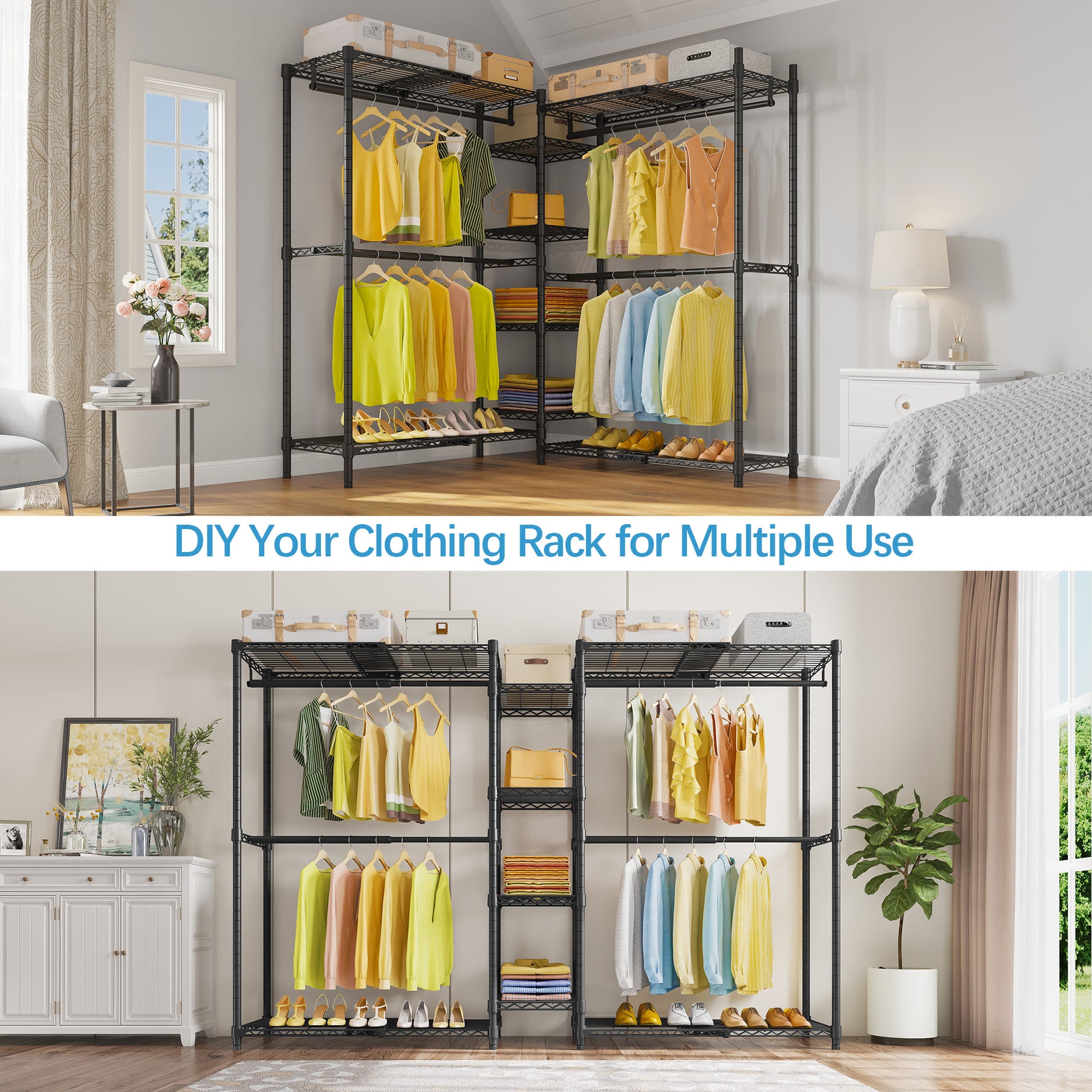 - DIY Closet Installation: VIPEK X3 garment rack can be assembled in 2 shapes for different types of rooms. The horizontal assembly way for the reach-in and walk-in closet, and the L shape for the corner space
