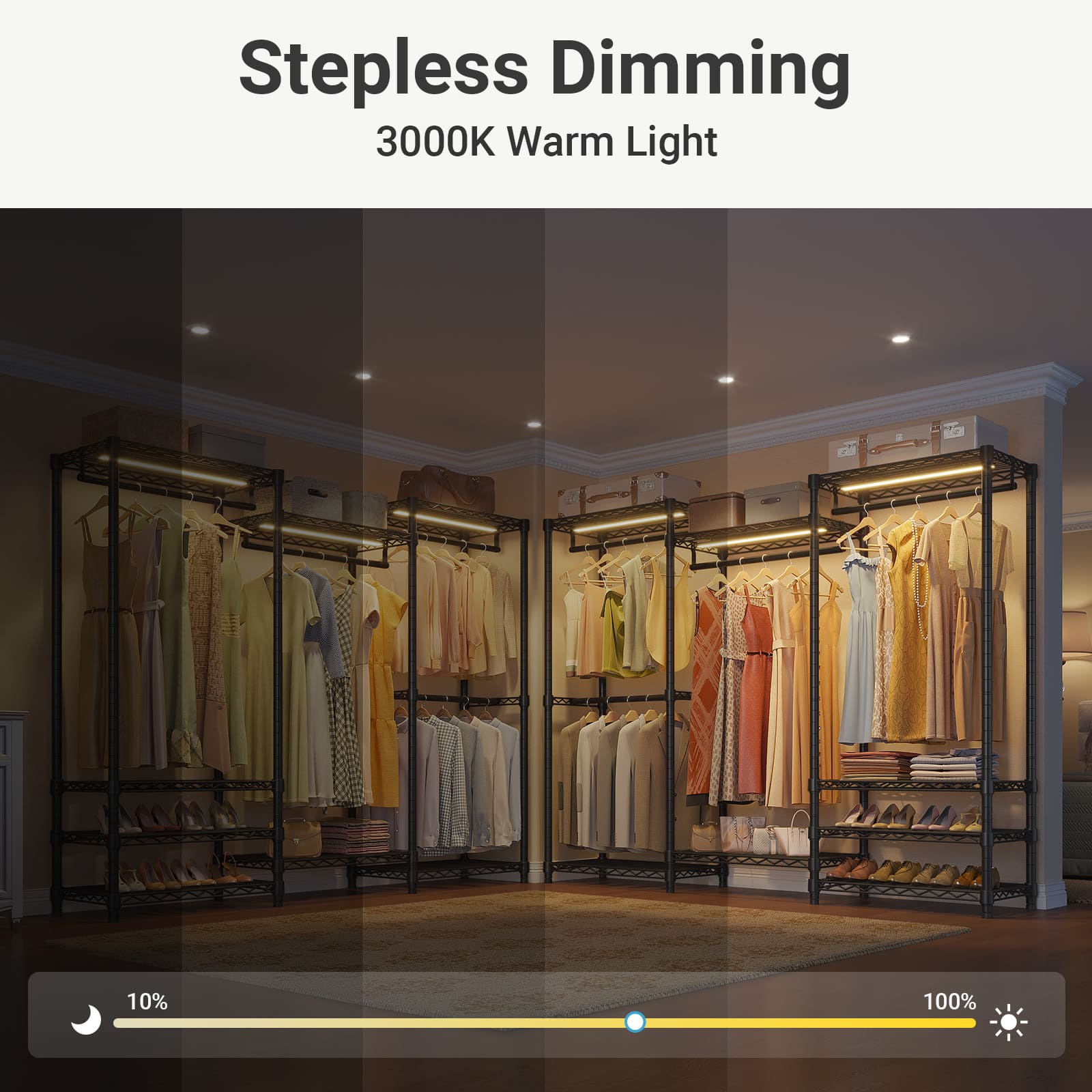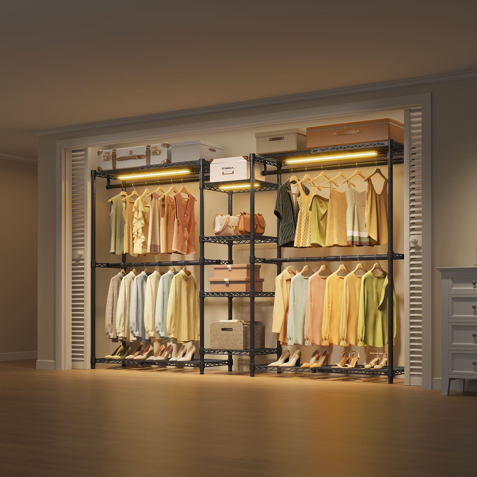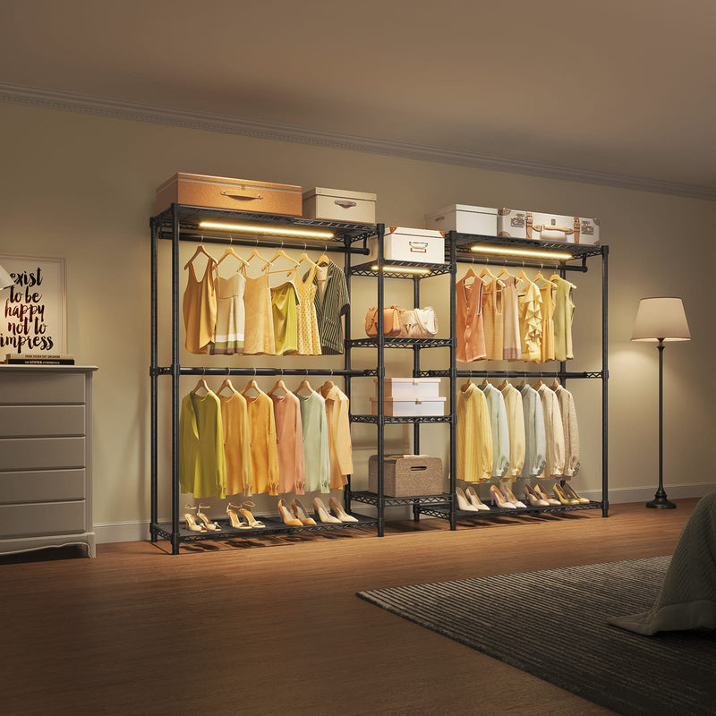 - STURDY & RELIABLE CLOSET ORGANIZER: Made of high quality iron, it features stable, sturdy and reliable freestanding closet system. Each hanging rod can support up to 75 lbs. Easy access in bedroom, cloakroom, clothing store, laundry room, walk-in closet and more.