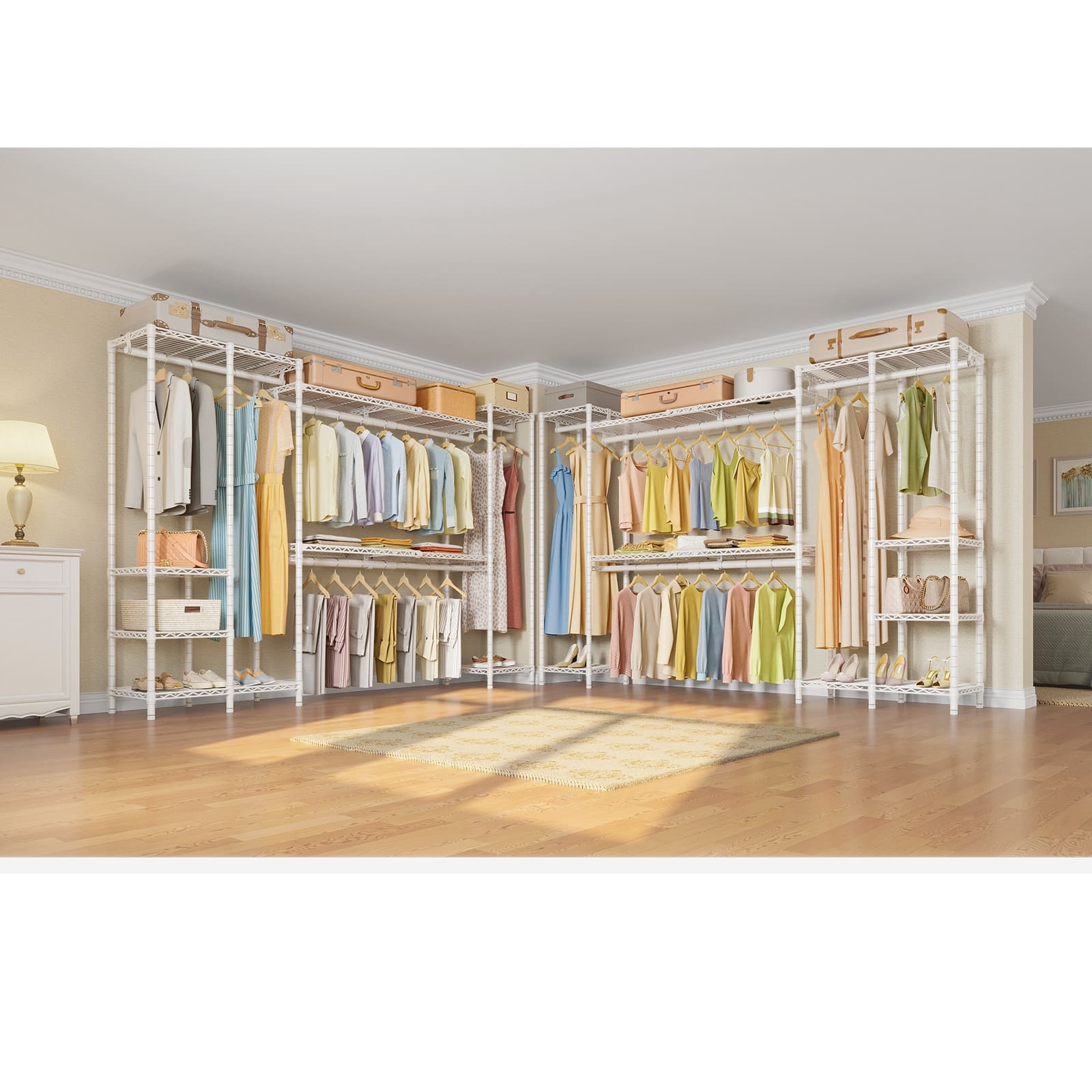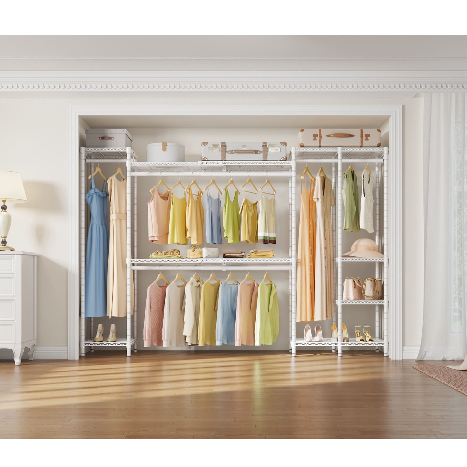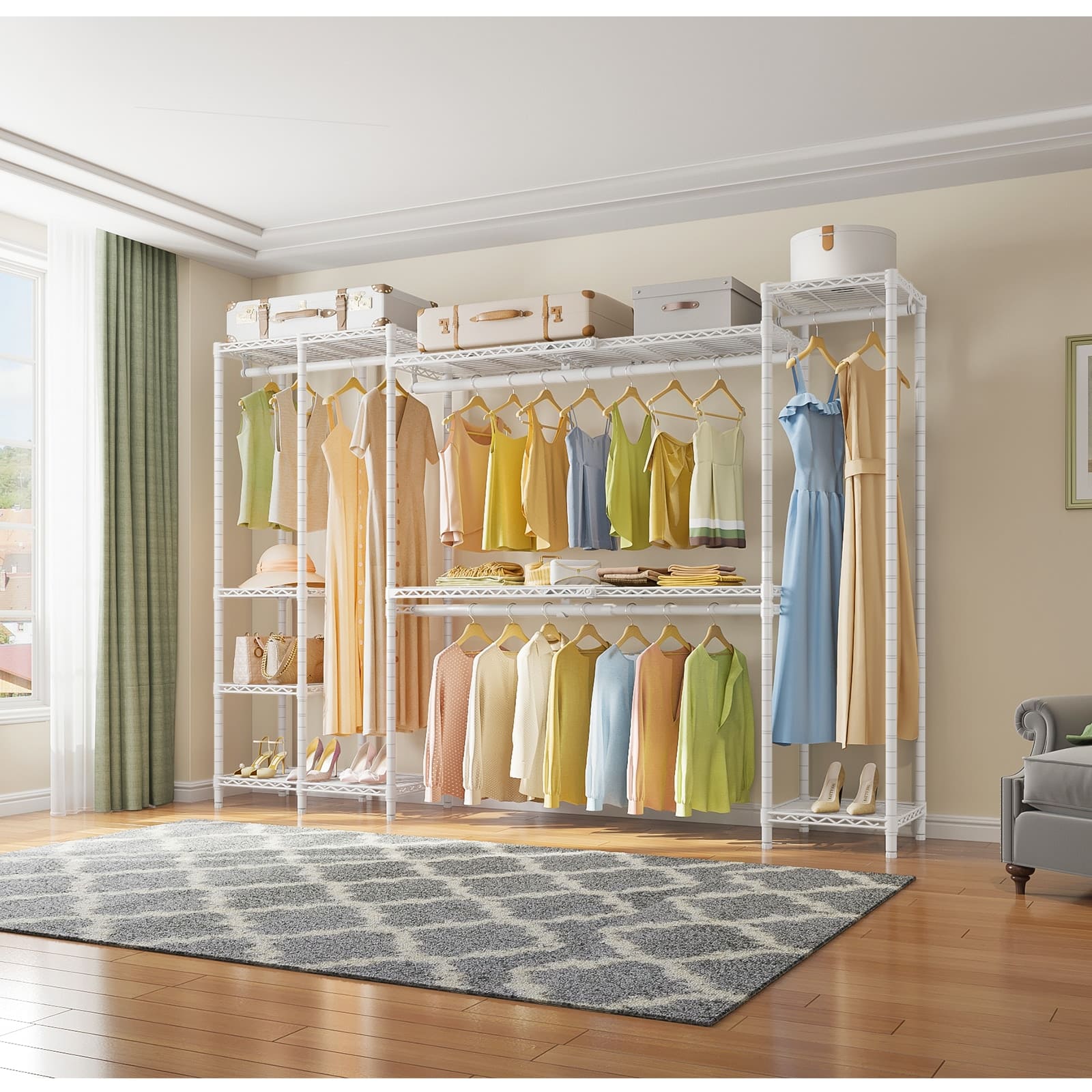 - STURDY & RELIABLE CLOSET ORGANIZER: Made of high quality iron, it features stable, sturdy and reliable freestanding closet system. Each hanging rod can support up to 75 lbs. Easy access in bedroom, cloakroom, clothing store, laundry room, walk-in closet and more.